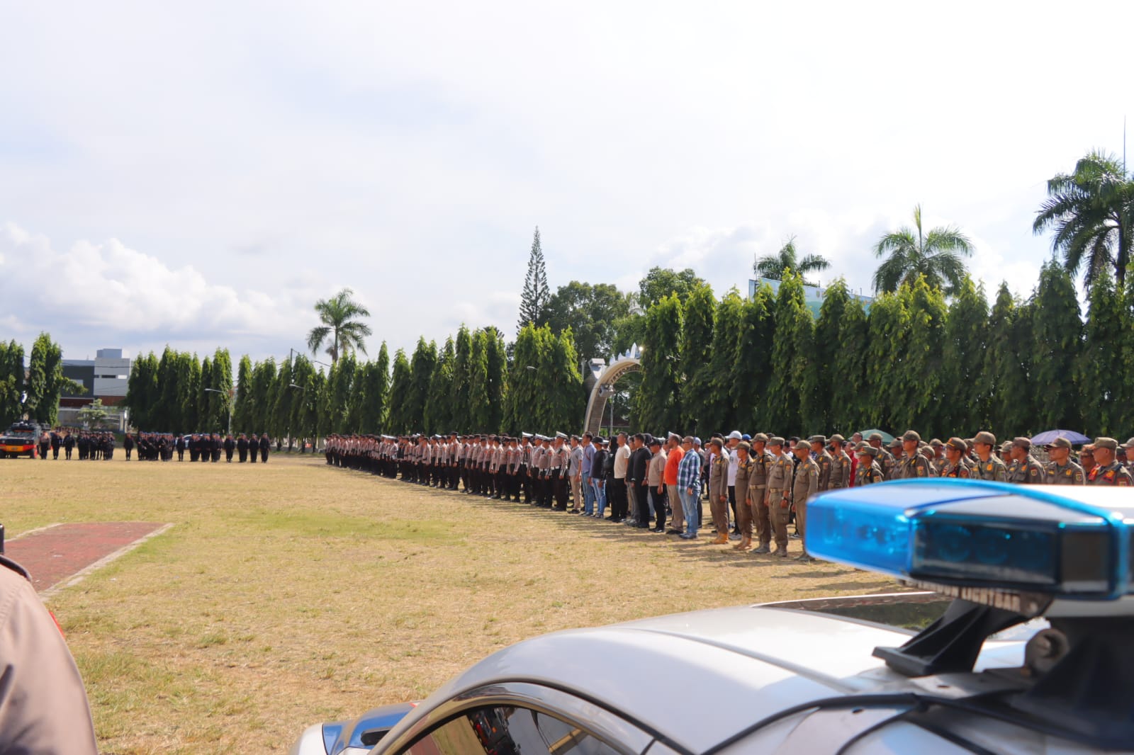tribratanews.lampung.polri.go.id. Bandar Lampung, Senin. 05 Mei 2025 - Aparat Kepolisian mengerahkan 794 personel pengamanan untuk mengawal aksi unjuk rasa dari Aliansi Masyarakat Peduli Petani Singkong Indonesia Provinsi Lampung, Senin (5/5/2025).Ribuan petani singkong dari berbagai wilayah di Provinsi Lampung akan melalukan aksi unjuk rasa di Kantor Pemerintah Provinsi Lampung. Kasi Humas Polresta Bandar Lampung, AKP Agustina Nilawati, mengatakan bahwa pihaknya mengerahkan 794 personel keamanan gabungan untuk mengawal aksi tersebut. "Ada 739 personel pengamanan yang dikerahkan, terdiri dari 333 personel Polresta Bandar Lampung dan 361 dari personel Polda Lampung," jelas AKP Agustina Nilawati, Senin (5/5/2025). Terkait alih arus, AKP Agustina Nilawati menjelaskan bahwa hal tersebut akan dilakukan melihat situasi dinamika perkembangan di lapangan. "Kita liat situasi dilapangan nantinya, jika memang harus dilakukan alih arus, maka akan kami berlakukan hal tersebut," Kata Kasi Humas. Dalam pengamanan ini, Polisi sudah memetakan sejumlah ruas jalan yang nantinya akan dilakukan alih arus jika terjadi peningkatan eskalasi di lapangan. Kasi Humas Polresta Bandar Lampung menambhakan bahwa dalam pengamanan ini pihaknya akan mengedepankan upaya persuasif dan humanis agar penyampaian asprirasi berjalan dengan aman dan tertib. "Kami imbau para peserta aksi untuk tetap menjaga ketertiban dan keamanan selama aksi berlangsung," Imbuh Kasi Humas. (*)