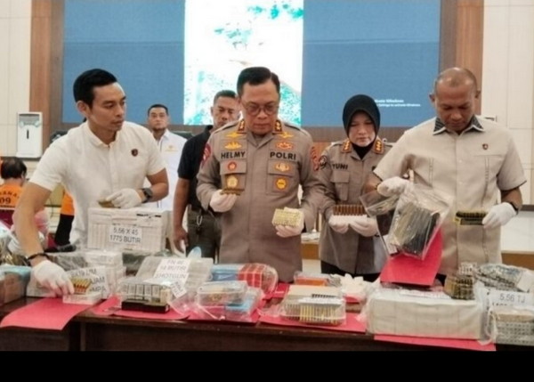 tribratanews.lampung.polri.go.id. Lampung — Penjualan amunisi ilegal kini menyasar ruang digital. Polda Lampung mengungkap modus penjualan peluru berbagai kaliber melalui platform digital, dengan menyamarkan produknya sebagai peralatan mekanik seperti mur, baut, hingga kunci pas.Kapolda Lampung Irjen Pol Helmy Santika mengatakan, temuan ini merupakan hasil pengembangan dari kasus industri rumahan perakitan senjata api (senpi) ilegal di Kota Bandarlampung. “Pelaku RK mendapatkan amunisi yang dijual di salah satu platform digital. Produknya tampak seperti alat mekanik, tapi di deskripsi tertulis kaliber 5,56 mm dan lainnya,” kata Helmy dalam konferensi pers di Mapolda Lampung, Kamis (26/6/2025). Deskripsi tersebut menjadi sinyal terselubung bagi jaringan pembeli bahwa produk tersebut sebenarnya adalah amunisi. Tujuannya, agar tidak terdeteksi sistem keamanan dan tetap bisa dipasarkan secara terbuka.
