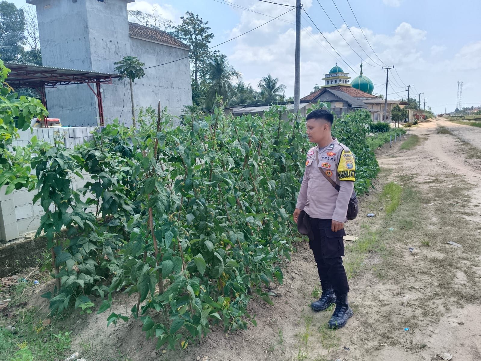 Asta Cita Presiden, Anggota Polsubsektor Rawa Jitu Utara Pengecekan Tanaman Kacang Panjang Di Desa Telogo Rejo