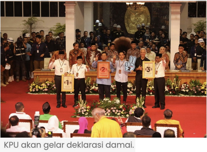 Diberitakan sebelumnya, KPU menggelar pengundian nomor urut peserta Pilpres 2024 di kantor KPU RI, Menteng, Jakarta Pusat, Selasa (14/11/2023). Pengundian nomor urut dilakukan dalam rapat pleno terbuka yang dipimpin oleh Ketua KPU Hasyim Asy'ari.