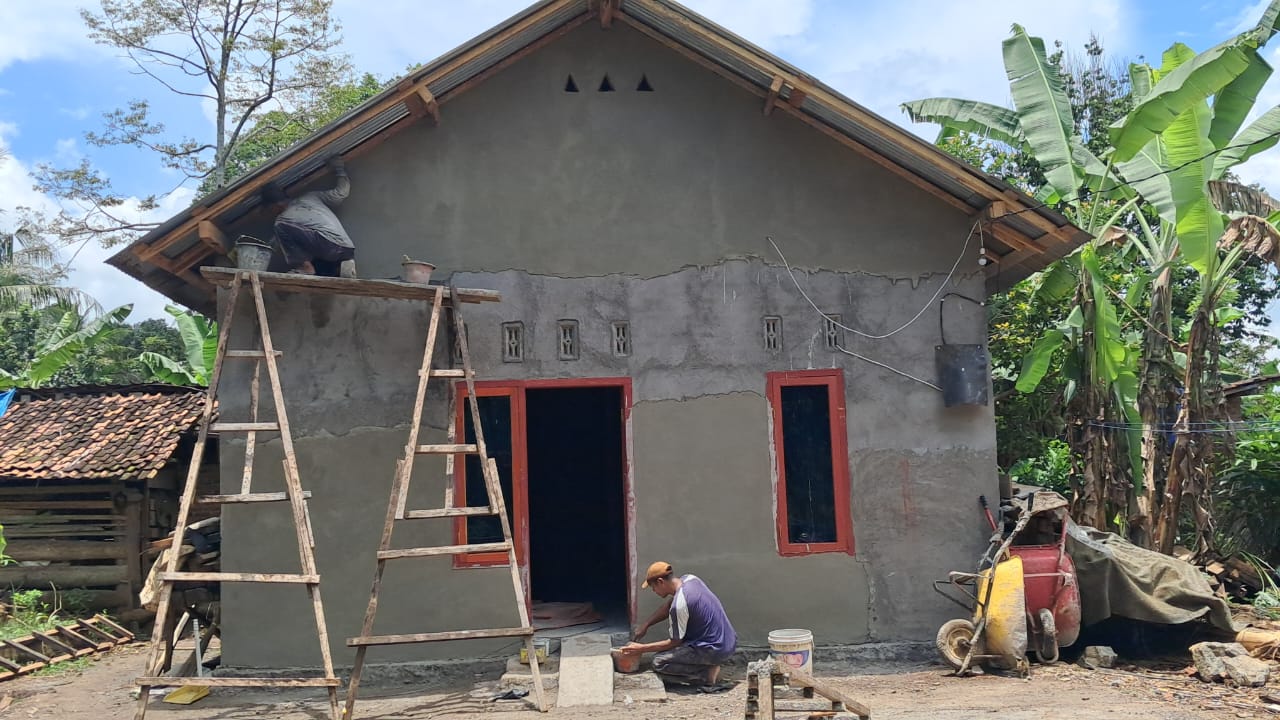 Bedah Rumah Polres Tanggamus untuk Surtini di Pulau Panggung Capai 90 Persen