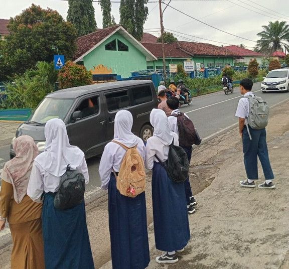 tribratanews.lampung.polri.go.id. Pesawaran, Selasa 06 Januari 2026 – Mengawali pekan pertama di bulan Januari, jajaran Polsek Gedong Tataan Polres Pesawaran melaksanakan pengamanan dan pengaturan lalu lintas pagi atau Pam Rawan Pagi di Jalur Lintas Barat. Fokus pengamanan kali ini dilaksanakan di depan SMP N 1 Gedong Tataan pada Selasa, 06 Januari 2026.Kegiatan yang dimulai sejak pukul 06.30 WIB ini melibatkan Panit III Samapta Aiptu Wando J.S. bersama Bhabinkamtibmas Bripka Cahyo Wisnu P. Kehadiran personel kepolisian di titik ini sangat vital mengingat volume kendaraan yang cukup tinggi di Jalur Lintas Barat bersamaan dengan jam masuk sekolah para siswa. Selain mengatur arus kendaraan guna mencegah kemacetan, petugas juga membantu menyeberangkan para siswa dan warga sekolah lainnya. Hal ini dilakukan sebagai langkah preventif untuk memberikan rasa aman dan mencegah terjadinya kecelakaan lalu lintas di area sekolah yang berada tepat di pinggir jalan raya utama. Kapolsek Gedong Tataan AKP Dedi Yohanes menjelaskan bahwa Pam Rawan Pagi merupakan komitmen Polsek Gedong Tataan dalam memberikan pelayanan prima kepada masyarakat, khususnya para pelajar. Kehadiran polisi di tengah masyarakat pada jam rawan diharapkan mampu mewujudkan situasi keamanan, keselamatan, ketertiban, dan kelancaran lalu lintas yang kondusif. Berdasarkan pantauan di lapangan, arus lalu lintas di depan SMP N 1 Gedong Tataan selama kegiatan berlangsung terpantau ramai namun tetap lancar. Situasi keamanan di lokasi tersebut juga dilaporkan dalam keadaan aman dan tertib, sehingga aktivitas belajar mengajar dapat dimulai dengan nyaman.