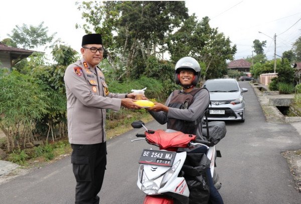 Berkah Ramadhan, Kapolres Lampung Barat Berikan Takjil kepada Warga di Jalan