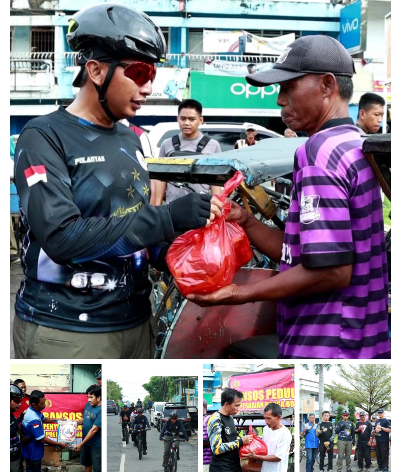 Tribratanews.lampung.polri.go.id - Polda Lampung : Lampung Utara, Kapolres Lampung Utara AKBP Kurniawan Ismail SH.SIK.MIK, para pejabat utama dan personil, bersama para kerabat dari IWO, ormas GMBI, FKPPI, menggelar kegiatan bersepeda sehat serta pemberian bansos kepada warga kurang mampu, sopir angkot, becak dan para pencari barang rongsokan yang terdampak penyesuaian kenaikan harga BBM pada Sabtu 8/10/2022.