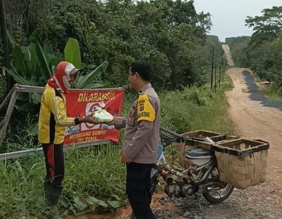 Bhabinkamtibmas Polsek 5anjung Raya Menyampaikan Pesan Kamtibmas Desa Bangun Jaya