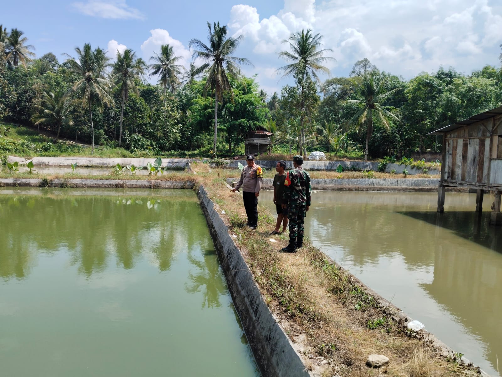 Bhabinkamtibmas Polsek Gedong Tataan dan Babinsa Edukasi Warga Budidaya Ikan Air Tawar