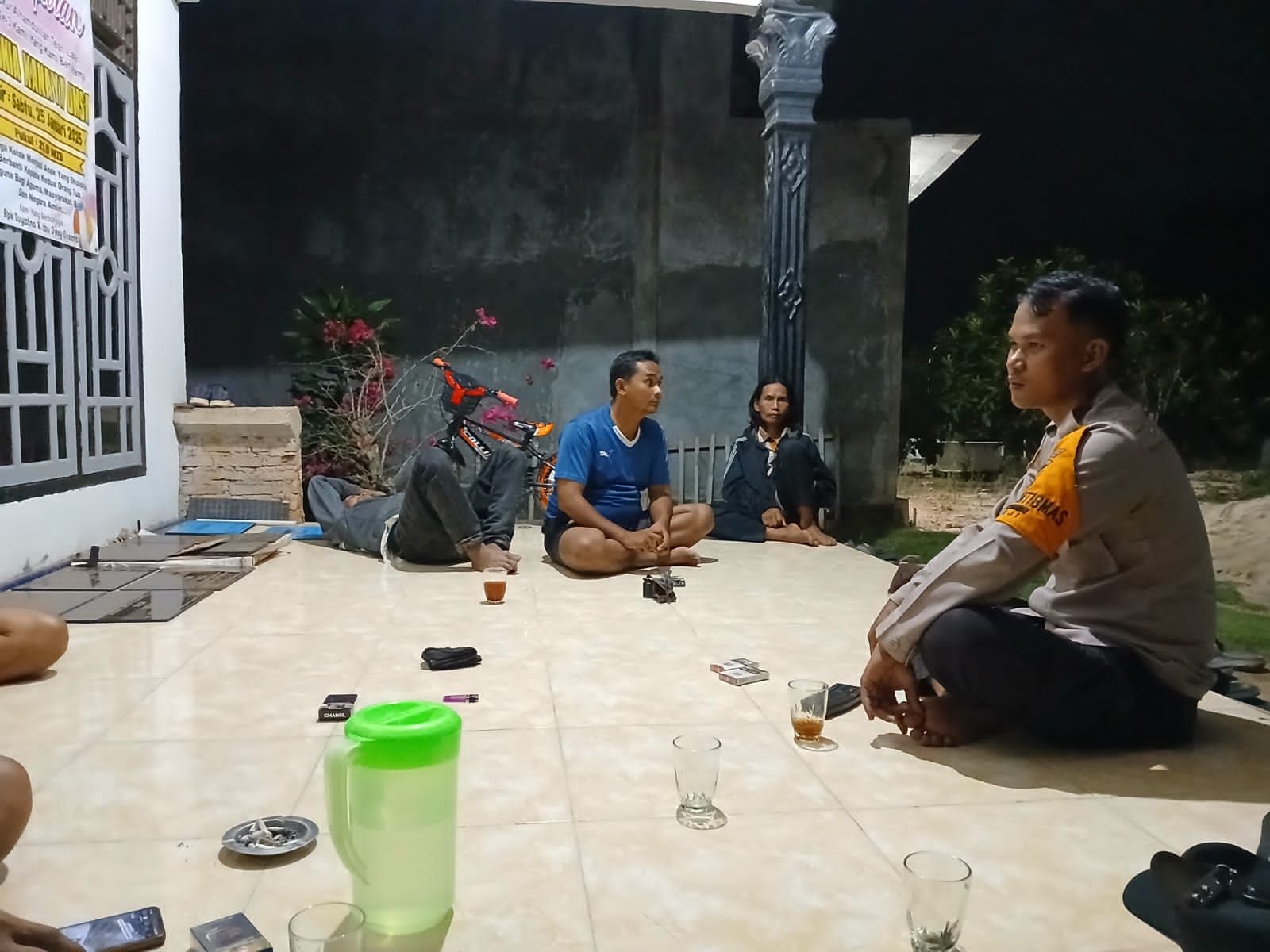 Bhabinkamtibmas Polsek Simpang Pematang Sambangi Warga Ronda Malam di Desa Mukti Karya