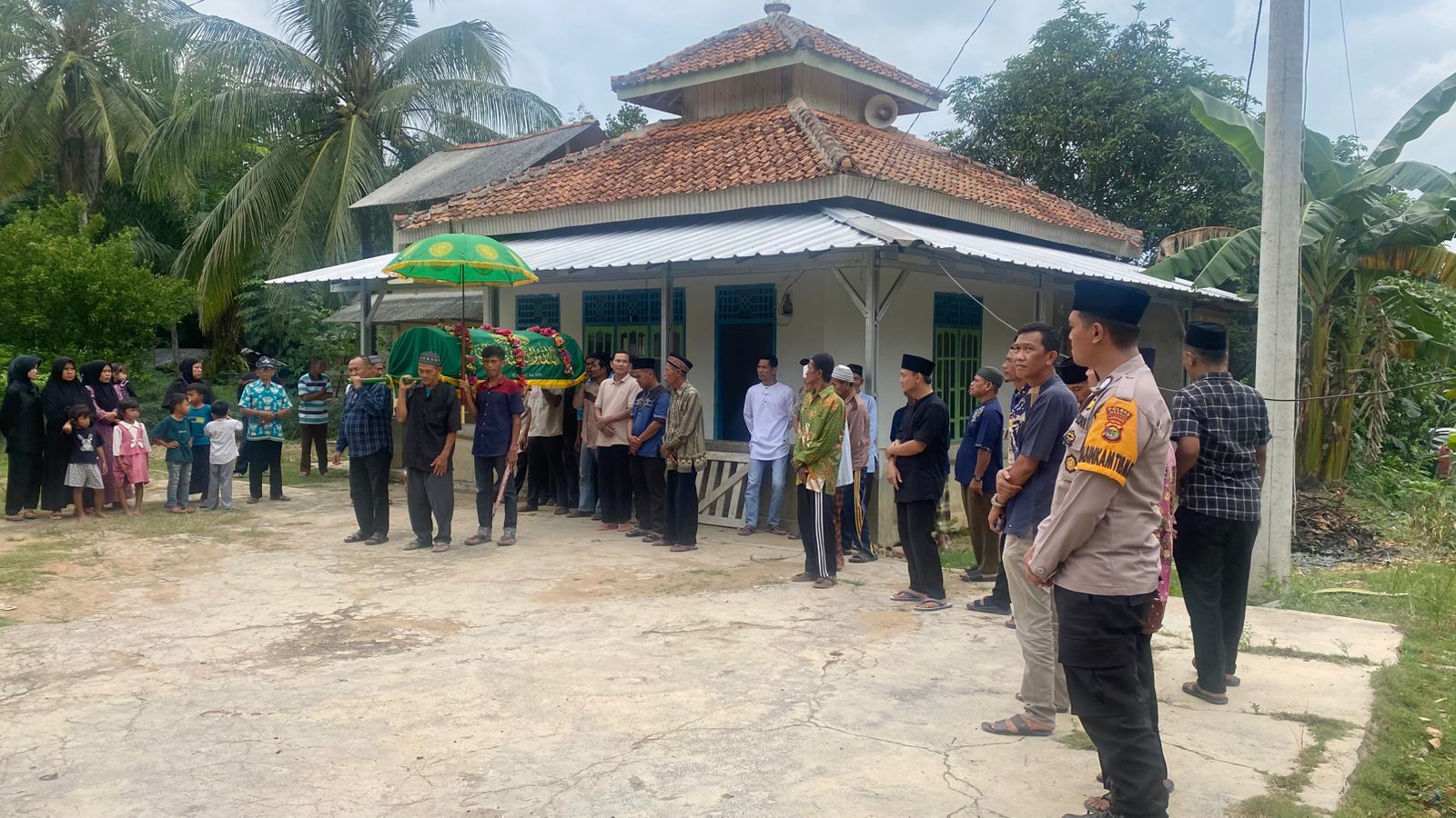 Bhabinkamtibmas Polsek Simpang Pematang Takziah di Kediaman Kepala Desa Aji Jaya