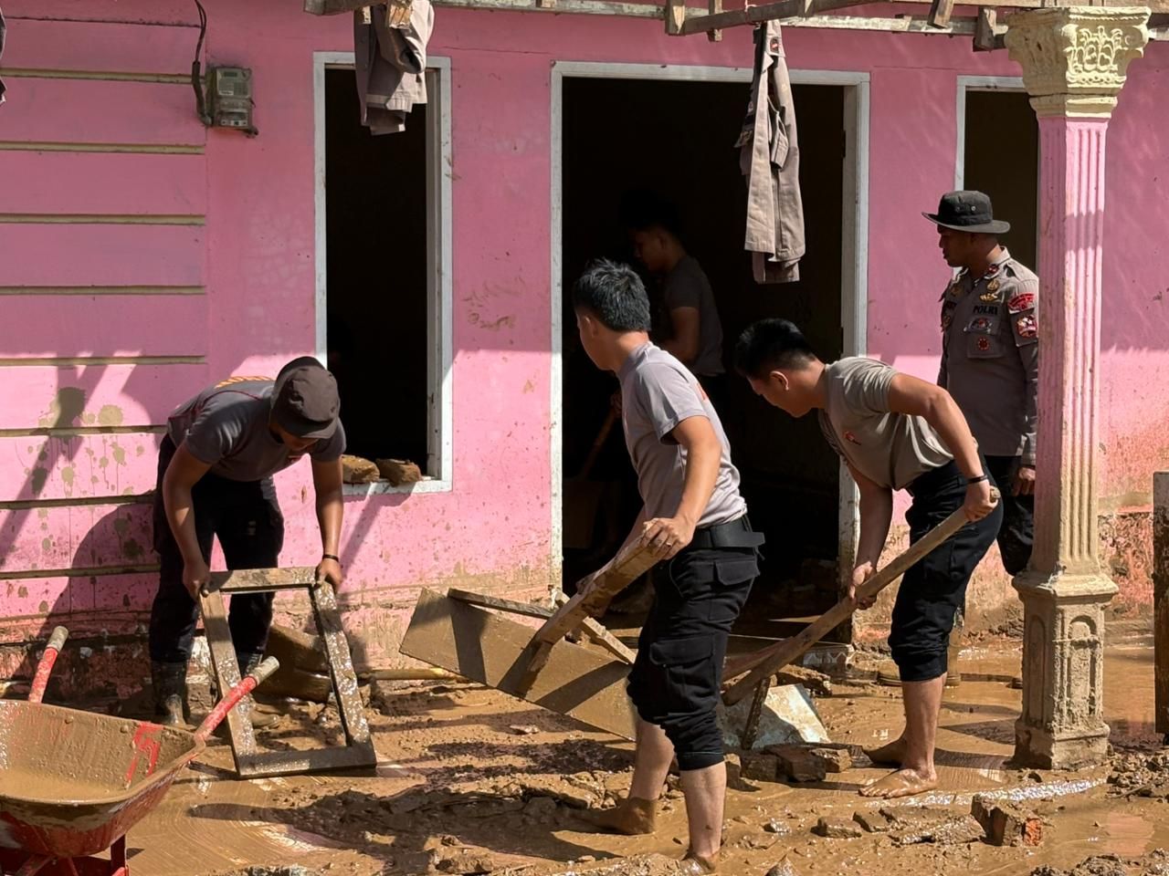 Brimob Polda Lampung BKO Sumbar Terjun Langsung Bantu Warga Terdampak Banjir dan Longsor di Padang Pariaman