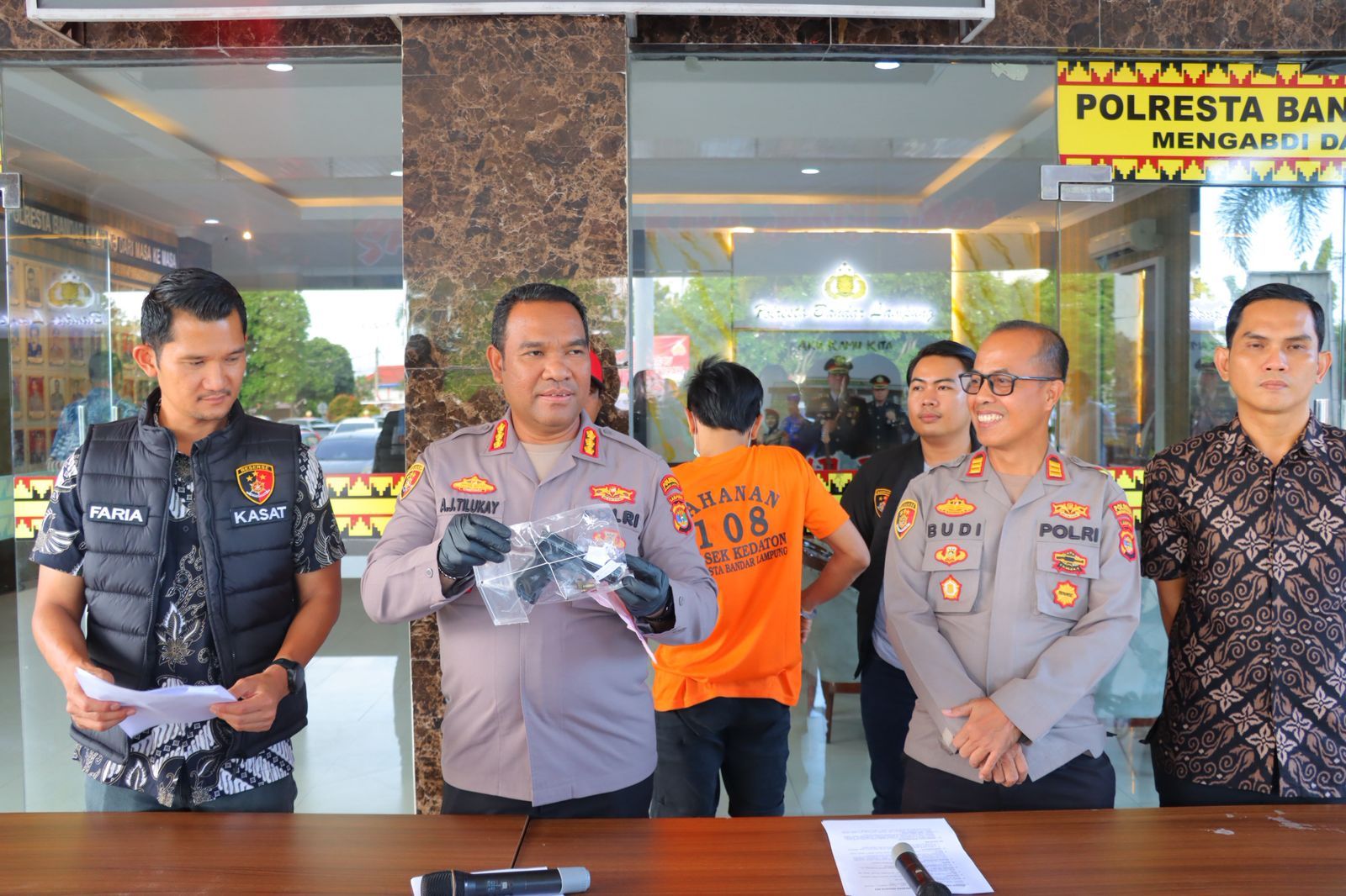 tribratanews.lampung.polri.go.id Bandar Lampung, Rabu 08 Oktober 2025 – Satreskrim Polresta Bandar Lampung menangkap seorang pria berinisial AP (32), warga Rajabasa Jaya, Lampung Timur. Ia kedapatan membawa sepucuk senjata api ilegal lengkap dengan empat butir amunisi aktif.Penangkapan terjadi pada Jumat (29/8/2025) sekitar pukul 02.30 WIB. Saat itu, Petugas yang sedang berpatroli di kawasan Jalan Nawawi Gelar Dalom, Rajabasa, mencurigai gerak-gerik AP. Kapolresta Bandar Lampung Kombes Pol Alfret Jacob Tilukay mengatakan, saat dilakukan pemeriksaan, petugas menemukan senjata api yang diselipkan di celana bagian belakang tersangka. “Selain satu pucuk senjata api, turut diamankan empat butir amunisi,” ujar Kombes Pol Alfret , Jumat (3/10/2025). Kapolresta menuturkan, hasil pemeriksaan menunjukkan senjata api tersebut bukan rakitan, melainkan buatan pabrikan asal Turki. “Jenisnya Zoraki MOD 914T, produksi ATAK Arms, kaliber 7,65 milimeter. Berdasarkan hasil uji balistik, dua peluru sudah pernah ditembakkan. Artinya, senjata ini aktif dan berfungsi normal,” jelas Alfret. Polisi kini masih menelusuri asal-usul kepemilikan senjata tersebut. Berdasarkan pengakuan tersangka, senjata itu didapat dari lemari milik ayahnya. “Ayahnya sedang kami cari karena diduga berada di luar Pulau Jawa. Kami juga sudah berkoordinasi dengan Perbakin dan BBIK untuk melacak riwayat senjata ini,” tambahnya. Dalam pemeriksaan, AP mengaku membawa senjata api tersebut untuk berjaga diri saat bepergian malam hari menggunakan sepeda motor. Namun, polisi menilai alasan itu tidak masuk akal. “Yang bersangkutan ini hanya bergaya, bukan karena ada ancaman. Tidak ada alasan pembenar bagi siapa pun untuk membawa senjata tanpa izin,” tegas Alfret. Tersangka AP kini mendekam di sel tahanan Polresta Bandar Lampung. Ia dijerat Pasal 1 ayat (1) Undang-Undang Darurat Nomor 12 Tahun 1951 tentang kepemilikan senjata api tanpa izin dengan ancaman hukuman maksimal 20 tahun penjara. Kapolresta mengimbau masyarakat agar tidak menyimpan atau membawa senjata api tanpa izin resmi karena tindakan tersebut termasuk tindak pidana berat dan membahayakan keselamatan publik.