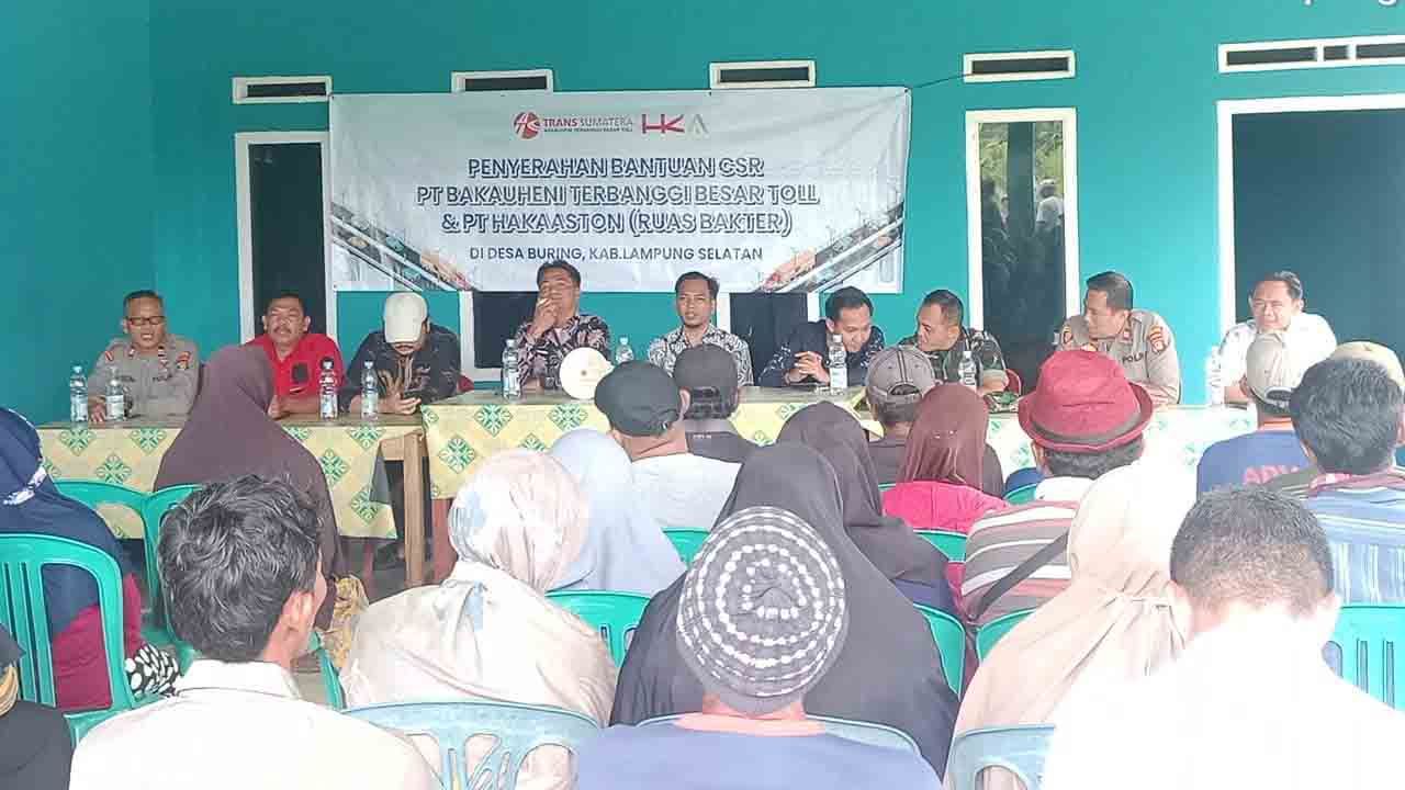 tribratanews.lampung.polri.go.id. Lampung Selatan, Jumat 03 Oktober 2025– Kepolisian Resor (Polres) Lampung Selatan melalui Satuan Binmas melaksanakan kegiatan cooling system pasca aksi damai masyarakat di Desa Sukabaru, Kecamatan Penengahan. Kegiatan berlangsung pada Jumat (03/10/2025) pagi hingga siang hari di Dusun Buring, desa setempat.Kegiatan ini dipimpin langsung oleh Kasat Binmas Polres Lampung Selatan, IPTU Aprizal, bersama sejumlah personel. Cooling system dilakukan sebagai upaya meredam tensi sosial pasca unjuk rasa warga terkait permasalahan ganti rugi lahan jalan tol. “Polisi hadir untuk menjaga situasi tetap kondusif. Kami mengajak masyarakat agar tidak mudah terprovokasi dan selalu mengedepankan musyawarah dalam menyelesaikan persoalan. Jika ada masalah, sampaikan melalui jalur yang tepat atau berkoordinasi dengan bhabinkamtibmas,” ujar IPTU Aprizal di lokasi kegiatan. Dalam kesempatan tersebut, pihak kepolisian juga menyaksikan langsung penyerahan bantuan Corporate Social Responsibility (CSR) dari PT Bakauheni Terbanggi Besar Tol dan PT Haka Aston (Ruas Bakter) kepada masyarakat setempat. Kehadiran perusahaan ini menjadi bagian dari tanggung jawab sosial mereka untuk mendukung kesejahteraan warga yang terdampak pembangunan. Selain melakukan cooling system, IPTU Aprizal dan jajaran turut berdialog dengan tokoh masyarakat, tokoh agama, dan pemuda setempat. Polisi mendengarkan aspirasi mereka serta memberikan pemahaman agar segala bentuk tuntutan tetap disalurkan secara damai dan tidak menimbulkan gangguan keamanan. Polisi Binmas juga menyampaikan pesan kamtibmas kepada masyarakat, antara lain pentingnya menjaga persatuan, menghindari penyebaran isu yang belum jelas kebenarannya, serta selalu berkoordinasi dengan aparat desa atau bhabinkamtibmas jika menghadapi persoalan. “Kita semua memiliki peran untuk menjaga Lampung Selatan tetap aman dan damai,” tambah IPTU Aprizal. Melalui kegiatan cooling system ini, Polres Lampung Selatan berharap tercipta hubungan yang harmonis antara masyarakat, pemerintah, kepolisian, dan pihak perusahaan. Dengan komunikasi yang baik, diharapkan situasi pasca unjuk rasa tetap kondusif, serta penyelesaian masalah ganti rugi dapat berjalan sesuai aturan tanpa menimbulkan konflik baru.
