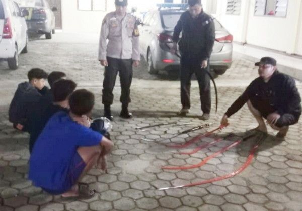 tribratanews.lampung.polri.go.id. Metro, Lampung, Senin 06 Oktober 2025 – Empat orang anak/pelajar diamankan oleh anggota Polsek Metro Utara pada Minggu malam, 5 Oktober 2025, sekitar pukul 21.45 WIB di Jalan Tekukur RT.10 RW.02, Kelurahan Banjarsari, Kecamatan Metro Utara. Mereka diamankan lantaran kedapatan menyimpan sejumlah senjata tajam yang diduga akan digunakan untuk aksi tawuran antar pelajar.Penangkapan tersebut berawal dari informasi masyarakat yang melaporkan adanya sekelompok remaja mencurigakan di lokasi tersebut. Menindaklanjuti laporan itu, petugas piket Polsek Metro Utara segera mendatangi tempat kejadian perkara (TKP) dan melakukan pemeriksaan. Dari hasil pemeriksaan, ditemukan beberapa jenis senjata tajam yang disimpan di rumah salah satu anak, antara lain: