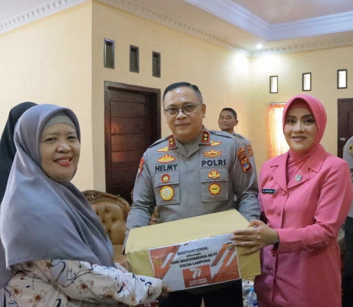 https://tribratanews.lampung.polri.go.id Kapolda Lampung Irjen Pol Helmy Santika beserta Ibu Ketua Bhayangkari Daerah Lampung Ny. Lurie Helmy Santika melaksanakan kegiatan Anjangsana para Warakawuri Polri yang suaminya gugur dalam bertugas dan memberikan santunan dalam rangka Hari Bhayangkara Ke-77 Tahun 2023.