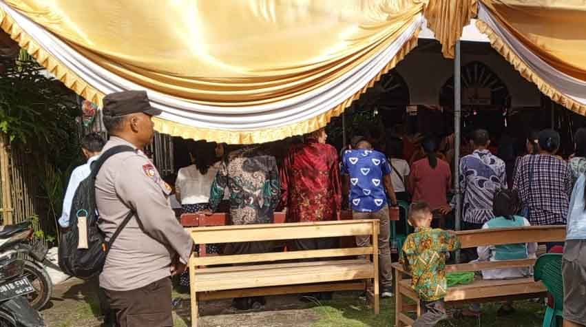 tribratanews.lampung.polri.go.id. Lampung Selatan, Rabu 10 Desember 2025 – Personel Polsek Palas, Polres Lampung Selatan, melakukan pengamanan perayaan Ibadah Natal Bersama di Gereja Gerakan Pantekosta Talitakum (GGP Talitakum), Desa Bali Agung, Kecamatan Palas, Selasa (9/12/2025). Kegiatan berlangsung sejak pukul 14.00 WIB dan berjalan lancar hingga selesai.