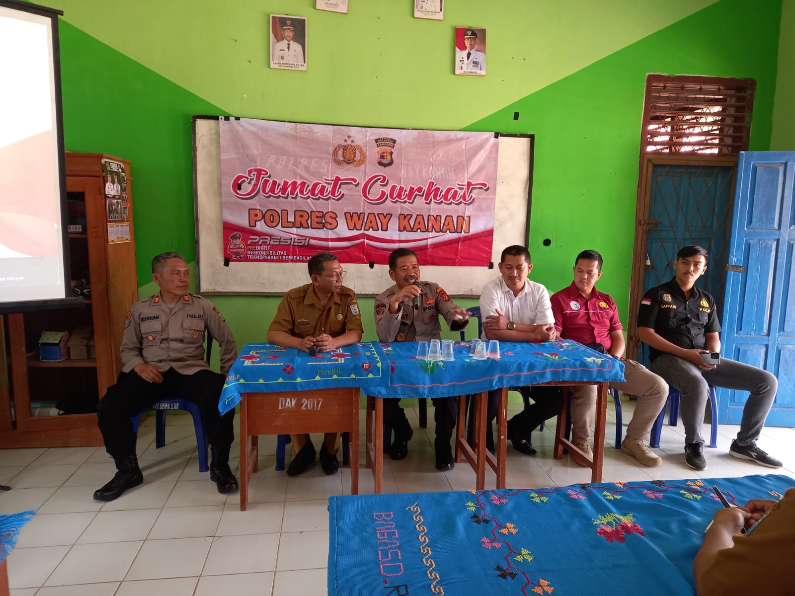 Dimana program jumat curhat dikandung maksud untuk mendengar, mencatat dan mencari solusi setiap permasalahan yang ada diwilayah masing-masing sehingga tercipta kedekatan antara Kepolisian khususnya Polres Way Kanan dengan masyarakat,” Ujarnya