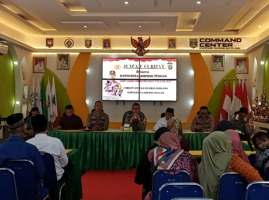 Turut hadir dalam kegiatan Jumat Curhat yakni para PJU Polres Lamteng, Kapolsek beserta Forkopimcam Terusan Nunyai, para Tomas, Toga dan Toda se-Kecamatan Terusan Nunyai, Lampung Tengah.