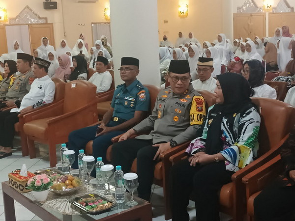 https://tribratanews.lampung.polri.go.id. Bandar Lampung - Kapolda Lampung, Irjen Pol Helmy Santika buka puasa bersama dengan puluhan anak yatim piatu, para kelompok usia lanjut, hingga warga Kota Bandar Lampung.Acara buka bersama bertepatan dalam kegiatan Safari Ramadan Tingkat Provinsi Lampung di Kota Bandar Lampung berlangsung di Masjid Al- Furqon, Jumat (22/3/2024). Dalam kegiatan ini, acara turut diwarnai pembagian beberapa santunan dalam bentuk uang tunai hingga paket sembako. "Mudah-mudahan Safari Ramadan ini, semoga pelaksanaan Ramadan kita tahun ini bisa lebih khusyuk dan bermakna," ucapnya saat dimintai keterangan. Kata dia, Safari Ramadan difasilitasi pemerintah daerah hingga pemerintah kabupaten/kota masing-masing ini juga bisa menjadi ajang peduli dan berbagai dengan segenap masyarakat di Lampung. "Kita maknai buka bersama semacam ini sebagai bentuk berbagai dengan sesama masyarakat, khusus umat Muslim melaksanakan ibadah Ramadan," ujar Helmy. Dalam kegiatan Safari Ramadan ini, Kapolda Lampung turut didampingi sejumlah Pejabat Utama Kepolisian, hingga Wali Kota Bandar Lampung Eva Dwiana dan jajaran Forkopimda lainnya.
