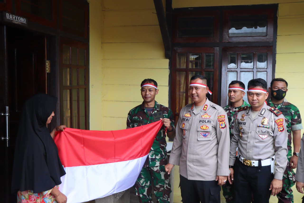 Tribratanews.lampung.Polri.go.id-Lampung Barat-Kapolres Lampung Barat AKBP Heri sugeng priyantho,S.IK, M.H dan Dandim 0422/Lb Letkol CZI Anthon Wibowo memimpin langsung pembagian gratis Bendera merah putih kepada masyarakat di wilayah Kecamatan Balik bukit Kabupaten Lampung Barat, Selasa ( 16/08/2022).