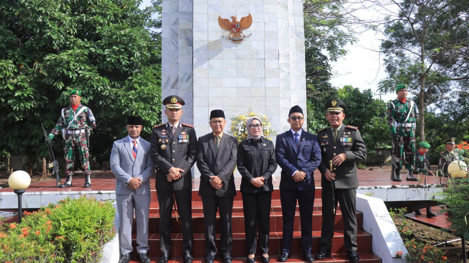 Tribratanews Lampung polri go id Metro Jumat 03 Oktober 2025 Dalam rangka memperingati Hari Ulang Tahun (HUT) Tentara Nasional Indonesia (TNI) ke-80, jajaran Forum Koordinasi Pimpinan Daerah (Forkopimda) Kota Metro melaksanakan upacara ziarah nasional di Taman Makam Pahlawan Kota Metro, Jumat (03/10/2025).Upacara yang berlangsung khidmat tersebut dipimpin langsung oleh Dandim 0411/KM Letkol Inf. Noval Darmawan, S.H., M.I.P. dan diikuti oleh seluruh unsur Forkopimda, pejabat daerah, serta perwakilan TNI-Polri. Kapolres Metro, AKBP Hangga Utama Darmawan, S.I.K., turut hadir bersama jajarannya untuk memberikan penghormatan kepada para pahlawan yang telah gugur memperjuangkan kemerdekaan bangsa. Rangkaian kegiatan diawali dengan penghormatan umum kepada arwah para pahlawan, peletakan karangan bunga di tugu makam pahlawan, hingga tabur bunga di pusara para pejuang. Seluruh peserta tampak mengikuti kegiatan dengan penuh rasa hormat, mengenang jasa para pendahulu yang telah mengorbankan jiwa dan raga demi tegaknya Negara Kesatuan Republik Indonesia. Kapolres Metro, AKBP Hangga Utama Darmawan, S.I.K., dalam keterangannya menyampaikan bahwa ziarah makam pahlawan ini bukan sekadar seremonial, tetapi juga menjadi momen penting untuk menumbuhkan semangat nasionalisme dan menjaga soliditas TNI-Polri bersama pemerintah daerah. "Kegiatan ziarah ini merupakan wujud penghargaan kita kepada para pahlawan. Melalui momen peringatan HUT TNI ke-80 ini, kita semua diingatkan untuk terus mengabdi dengan tulus, menjaga persatuan, dan bersama-sama membangun Kota Metro agar lebih maju dan aman," ujar Kapolres. Beliau juga menambahkan bahwa soliditas TNI-Polri bersama Forkopimda akan terus ditingkatkan guna mewujudkan stabilitas keamanan, sehingga masyarakat Kota Metro dapat hidup dengan tenang dan nyaman. Upacara ziarah ini menjadi salah satu rangkaian kegiatan dalam memperingati HUT TNI ke-80 di Kota Metro. Selain sebagai penghormatan kepada para pahlawan, kegiatan ini juga memperkuat sinergitas antara TNI, Polri, dan pemerintah daerah dalam menjaga persatuan dan kesatuan bangsa.