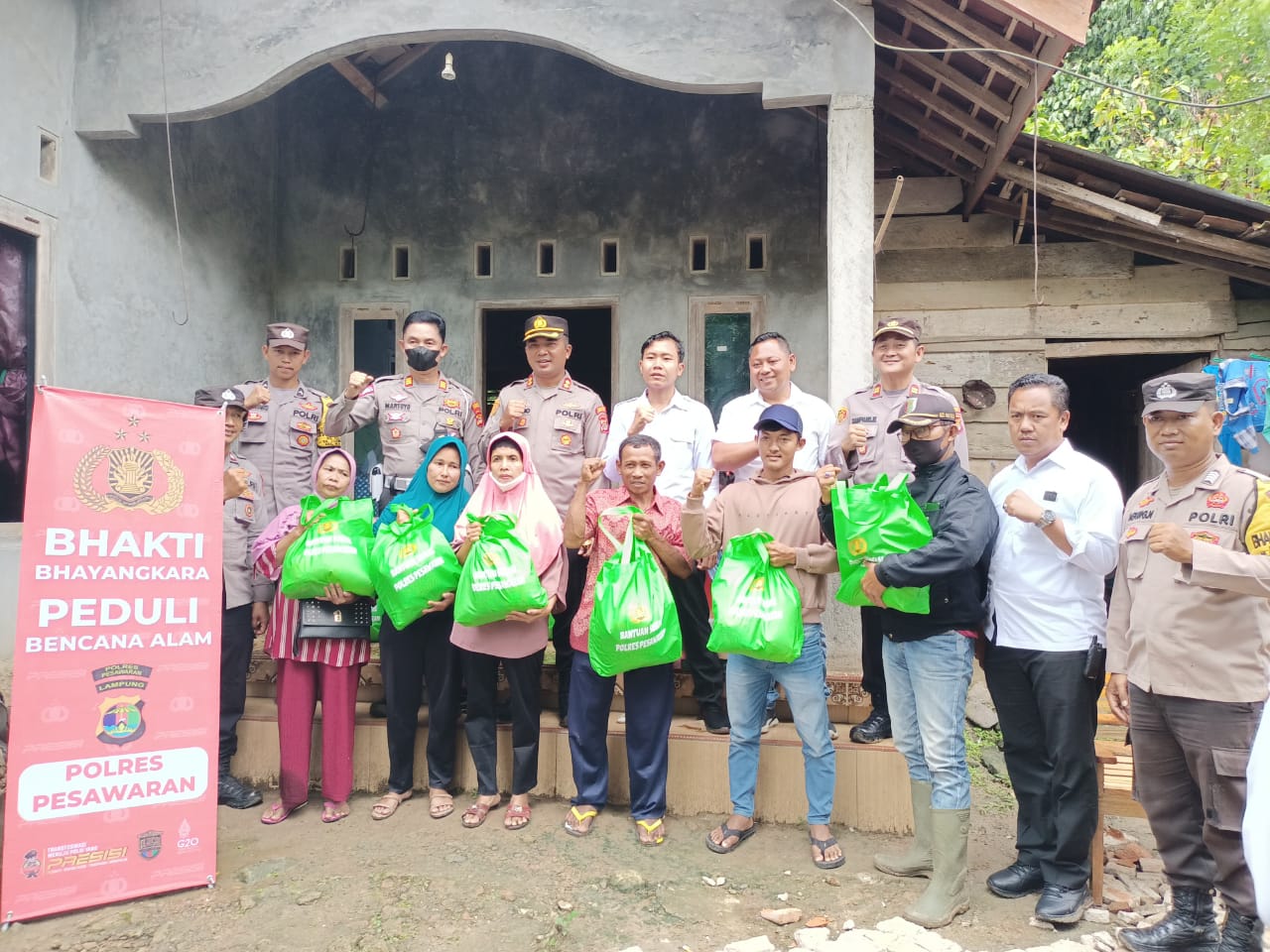 Polres Pesawaran kembali memberikan bantuan Sosial (Bansos) kepada korban banjir dan tanah longsor kali ini di Wilayah Kecamatan Way Ratai, Kabupaten Pesawaran, Rabu (26/10/2022).