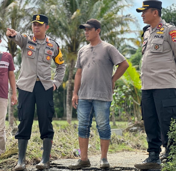 tribratanews.lampung.polri.go.id. Kapolres Pesisir Barat AKBP Alsyahendra SIK.MH didampingi Kabag Ops Polres Pesisir Barat Kompol Abdul Rasyid, SH.MH, Plh Kapolsek Pesisir Tengah Ipda Agustiar, S.Pdi, Kanit Reskrim Polsek Pesisir Tengah Ipda Jepriyansa, SH, Peratin Way Nukak Mat Darmawan serta personil lainnya tinjau lokasi pasca banjir di Pekon Way Nukak, Pekon Laay Penengahan Kecamatan Karya Penggawa Kabupaten Pesisir Barat, Sabtu (11/1/2025).Saat di lokasi Kapolres Pesisir Barat meninjau lokasi rumah warga yang terdampak banjir hingga ke Kanal Sungai Way Laay yang jebol pada malam hari. Kapolres Pesisir Barat AKBP Alsyahendra SIK.MH berharap bisa berkordinasi dengan Pemkab Pesisir Barat untuk percepatan penanggulangan bencana dan perbaikan tanggul pembatas kanal Sungai Way Laay karena menyangkut keselamatan warga disekitar,"ucapnya. Lebih lanjut Kapolres juga meminta kepada seluruh aggota Polres Peisir Barat maupun Polsek Psisir Tengah, "Apabila terjadi bencana tim langsung segera bantu masyarakat berikan rasa aman kepada masyarakat yang terdampak bencana agar segera di evakuasi ke tempat yang lebih aman,"ucapnya. Banjir terjadi akbiat air Sungai Waylaay meluap. Hal ini terjadi karena curah hujan tinggi dibagian hulu sungai, di daerah Kabupaten Lampung Barat. Volume air sungai sangat besar akhirnya meluap dan merendam ratusan rumah warga di Penengahan, Kecamatan Karya Penggawa. Dalam peristiwa tersebut warga mengalami kerugian berupa hewan ternak yang terbawa arus, beras, peralatan rumah tangga, mesin penggiling padi, ratusan rumah warga terendam namun tidak ada korban jiwa.
