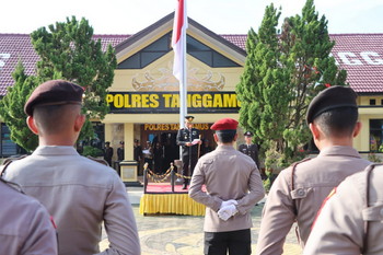 tribratanews.lampung.polri.go.id. Tanggamus, Rabu 01 Oktober 2025 – Kapolres Tanggamus, AKBP Rahmad Sujatmiko, S.I.K., M.H., memimpin langsung upacara peringatan Hari Kesaktian Pancasila yang digelar di lapangan Mapolres Tanggamus Rabu (1/10/2025).Upacara berlangsung khidmat dengan diikuti para pejabat utama Polres Tanggamus, personil gabungan Polres, gabungan Polsek jajaran dan ASN Polres Tanggamus. Bertindak sebagai komanda upacara Ipda Jeri Askar, selaku pembaca teks UUD 1945 yakni Ipda Andrapala dan pembacaan ikrar oleh Ipda Febran.