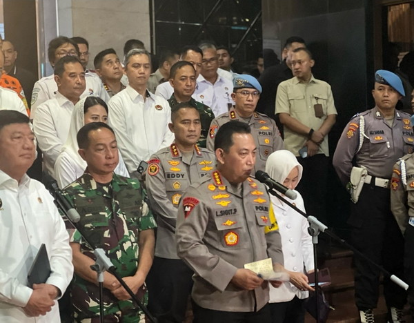 tribratanews.lampung.polri.go.id. Jakarta, Selasa 01 April 2025 Kapolri Jenderal Polisi Drs. Listyo Sigit Prabowo menyatakan bahwa pengamanan pada saat Salat Idulfitri 1446 Hijriah menyasar 78.506 masjid. Hal itu disampaikan Jenderal Sigit usai video conference dengan jajaran yang dipimpin Menkopolkam Budi Gunawan, untuk memastika kesiapan pengamanan Hari Raya Lebaran 2025.“Kurang lebih 78.506 masjid dan 38.390 tempat yang akan digunakan untuk melaksanakan selat Ied,” ungkap Jenderal Sigit di Gedung Promoter Polda Metro Jaya, Jakarta Selatan, Minggu (30/3/25). Menurut Jenderal Sigit, pengamanan sendiri telah dipastikan berjalan sejak malam takbiran saat ini. Dalam video conference, dipastikan seluruh jajaran telah siap melaksanakan pengamanan Salat Ied, besok (31/3/25). Disampaikan Jenderal Sigit, untuk malam takbiran sendiri telah terdapat 843 titik yang digunakan untuk melaksanakan kegiatan malam takbiran. “Jadi perlu saya informasikan kepada rekan-rekan bahwa hari ini ada kurang lebih 843 titik yang digunakan untuk melaksanakan kegiatan malam takbiran yang melibatkan kurang lebih 555.589 orang,” ujar Jenderal Sigit. Jendedal Sigit pun menyampaikan selamat Hari Raya Idulfitri kepada umat Muslim di seluruh Indonesia. Ia memastikan, pengamanan masih akan terus dilakukan hingga arus balik selesai dilakukan. “Kami mengutapkan Selamat Hari Raya Idulfitri 1446 Hijriah,” ujar Kapolri. Dalam video conference tersebut turut hadir Panglima TNI Jenderal Agus Subiyanto, Menteri Perhubungan Duddy Purwagandhi, Kepala BMKG Dwikorita, Menteri Dalam Negeri Tito Karnavian, Kabaintelkam Komjen Pol. Syahardiantono, Kadivhumas Polri Irjen Pol. Sandi Nugroho, Kapolda Metro Jaya Irjen Pol. Karyoto, Pangdam Jaya Mayjen TNI Rafael G, Kakorlantas Polri Irjen Pol. Agus Suryonugroho, dan sejumlah pejabat lainnya.