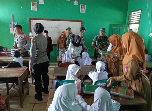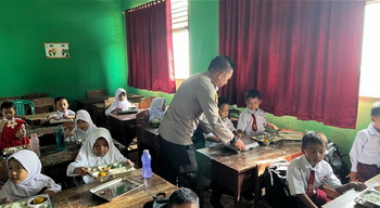 tribratanews.lampung.polri.go.id. Way Kanan, Rabu 01 Oktober 2025 Polsek Blambangan Umpu Polres Way Kanan Polda Lampung melaksanakan monitoring terhadap pelaksanaan Program Makan Bergizi Gratis (MBG) yang disalurkan oleh SPPG PKBM Flamboyan di Wilayah Kecamatan Umpu Semenguk Kabupaten Way Kanan. Rabu (01/10/2025).Seperti tampak di kegiatan tersebut Kapolsek Blambangan Umpu AKP Yudhianto bersama personel Polsek Blambangan Umpu dan TNI berkesempatan melakukan monitoring di SDN 02 Negeri Baru Kecamatan Umpu Semenguk Kabupaten Way Kanan. Menu makan bergizi yang dibagikan terdiri dari nasi putih, ayam kecap, tahu crispy, capcay dan buah jeruk.