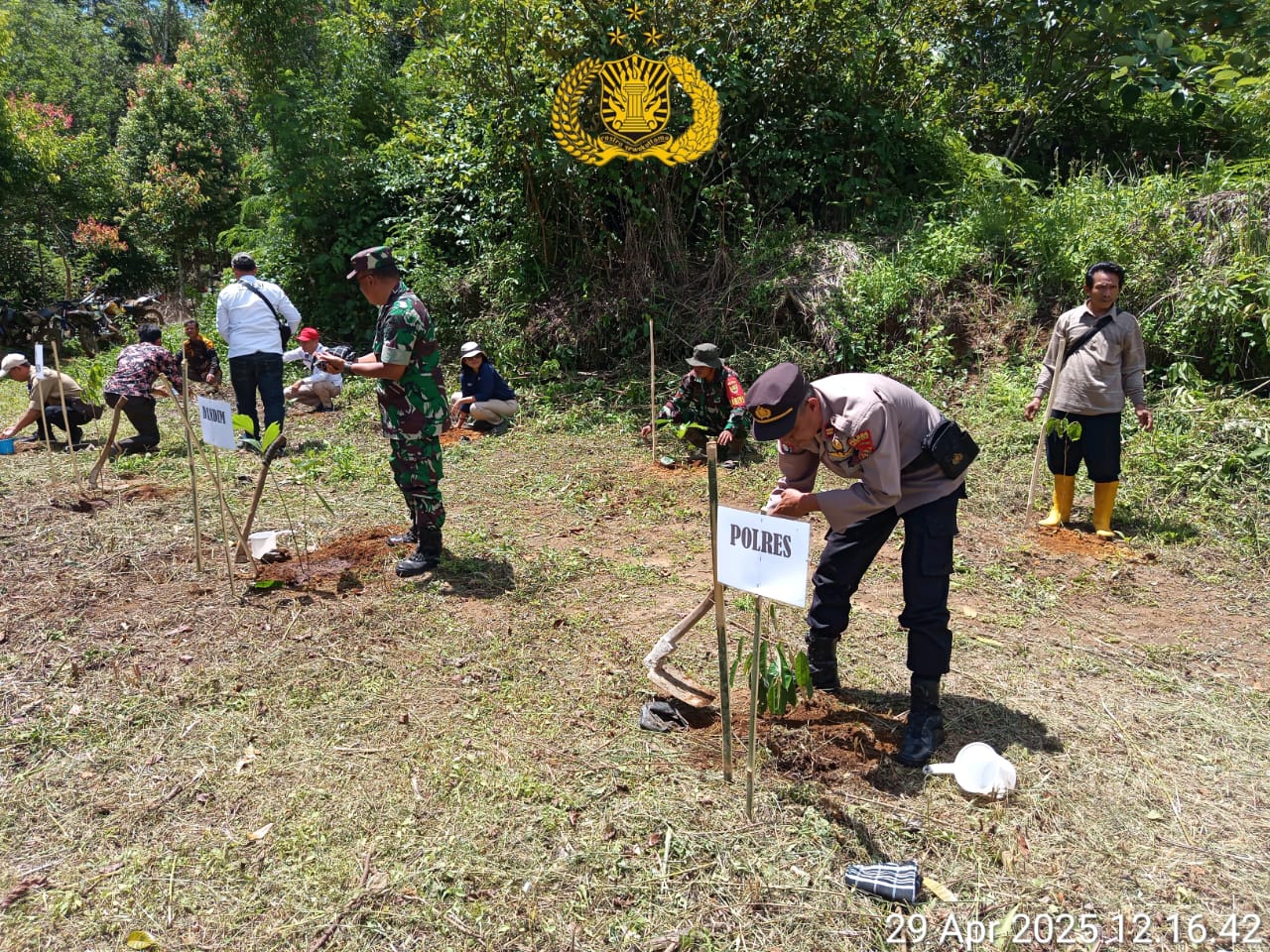 tribratanews.lampung.polri.go.id. Lampung Barat, Rabu 30 April 2025 – Kapolsek Balik Bukit IPTU Saptudin menghadiri kegiatan sosialisasi dan aksi penanaman pohon dalam rangka pemulihan ekosistem Taman Nasional Bukit Barisan Selatan (TNBBS) yang berlangsung di Balai Desa Pekon Ujung Rembun, Kecamatan Lumbok Seminung, Kabupaten Lampung Barat, pada Selasa, 29 April 2025.Kegiatan ini diprakarsai oleh Seksi Pengelolaan TN Wilayah III dan Bidang Pengelolaan Wilayah II, serta didukung oleh mitra kerja dari Wildlife Conservation Society - Indonesia Program (WCS-IP). Acara berlangsung dengan rangkaian kegiatan berupa pembukaan, menyanyikan lagu Indonesia Raya, doa, sambutan-sambutan, penandatanganan kesepakatan bersama, penanaman pohon secara simbolis, dan diakhiri dengan ramah tamah. Turut hadir dalam kegiatan ini antara lain Kasdim 0422/LB Mayor Inf. Suroto, Camat Lumbok Seminung Erwin Ardiansyah, perwakilan WCS Firdaus Afandi, Kepala Bidang Wilayah II TNBBS Sanandre, perwakilan Polisi Kehutanan Nasrius, Pj. Pratin Ujung Rembun Alamsyah, Babinsa Koptu Aprizal, Kanit Samapta Aipda Joni Iskandar, tokoh agama KH Ghofur, serta masyarakat Pekon Ujung Rembun. Dalam sambutannya, Camat Lumbok Seminung menyampaikan pentingnya kegiatan menanam pohon sebagai langkah menjaga hutan sebagai paru-paru dunia dan sumber oksigen untuk masa depan. Hal ini didukung oleh WCS yang menegaskan pentingnya peran serta masyarakat sebagai mitra pelestarian lingkungan, dan akan dilakukan monitoring lanjutan terhadap hasil penanaman. Kasdim 0422/LB Mayor Inf. Suroto mengajak masyarakat agar menghentikan perambahan hutan dan menjaga kelestarian hutan sebagai habitat alami satwa liar, guna mencegah konflik antara manusia dan hewan seperti harimau dan gajah. Kapolres Lampung Barat AKBP Rinaldo Aser, S.H., S.I.K., M.Si., melalui Kapolsek Balik Bukit IPTU Saptudin, menyampaikan bahwa kegiatan menanam pohon merupakan bentuk kepedulian dan tanggung jawab bersama demi warisan alam yang lestari bagi anak cucu. Sebagai bentuk komitmen bersama, masyarakat penggarap di kawasan Talang Tenam menyepakati 10 poin perjanjian, di antaranya tidak membuka lahan baru, tidak menebang pohon secara ilegal, tidak memburu satwa liar, serta bersedia melakukan penanaman kembali pohon asli TNBBS secara swadaya atau melalui bantuan pihak terkait.