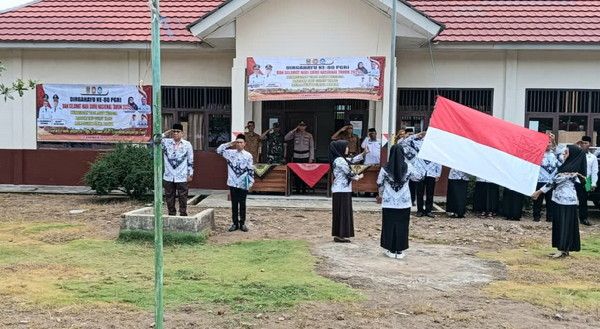 tribratanews.lampung.polri.go.id. Tanggamus, Rabu 26 Nopember 2025– Upacara peringatan Hari Ulang Tahun (HUT) ke-80 Persatuan Guru Republik Indonesia (PGRI) sekaligus Hari Guru Nasional tahun 2025 berlangsung khidmat di halaman SMPN 1 Pematangsawa, Kabupaten Tanggamus, Selasa (25/11/2025). Tahun ini, Hari Guru Nasional mengusung tema “Merawat Semesta Dengan Cinta.”Upacara yang dimulai pukul 08.30 WIB tersebut dipimpin oleh Barlian, selaku Kepala SPLP Pematangsawa sekaligus Pembina Upacara. Kapolsek Pematang Sawa, Ipda Ahmad Rais, S.H., turut hadir bersama unsur Forkopimcam. Rangkaian kegiatan berlangsung tertib dan penuh penghormatan, mulai dari pengibaran bendera Merah Putih, mengheningkan cipta, pembacaan teks Pancasila, pembacaan sejarah PGRI, hingga menyanyikan Mars PGRI dan Himne Guru.