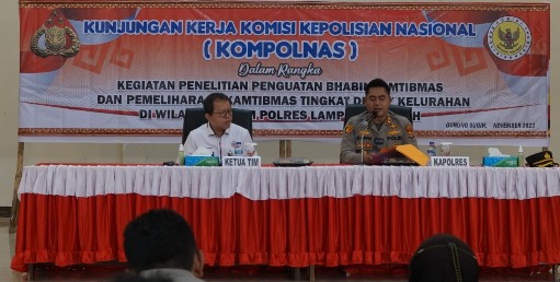 Tribratanews.lampung.polri.go.id : Polres Lampung Tengah menerima kunjungan kerja Komisi Kepolisian Nasional (Kompolnas) dalam rangka penelitian terkait penguatan Bhabinkamtibmas dalam pemeliharaan Kamtibmas di tingkat Kelurahan, Jumat (4/11/22).