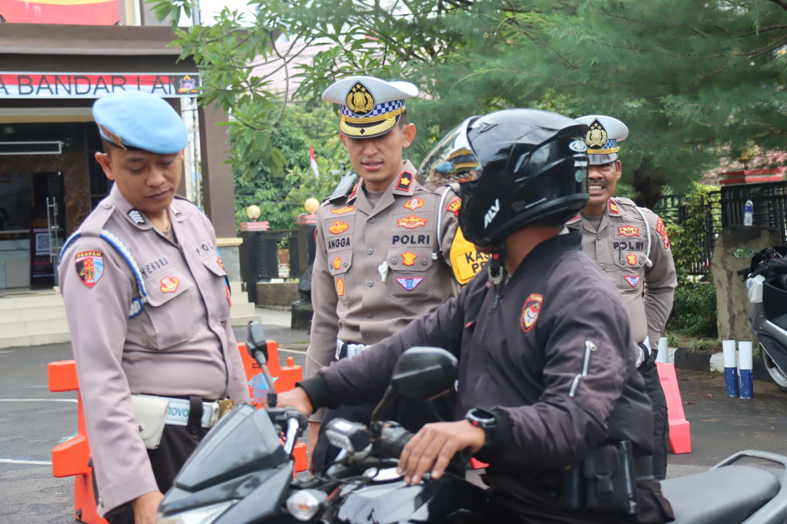tribratanews.lampung.polri.go.id Bandar Lampung Selasa 18 Nopember 2025 – Dalam rangka mendukung pelaksanaan Operasi Zebra Krakatau 2025, Satlantas Polresta Bandar Lampung bersama Seksi Profesi dan Pengamanan (Propam) melakukan pemeriksaan kelengkapan berkendara terhadap seluruh personel Polresta Bandar Lampung.Pemeriksaan dipimpin oleh Kasat Lantas Polresta Bandar Lampung, Kompol G.M. Angga Satrya Wibawa didampingi Kasi Propam Polresta Bandar Lampung, AKP B Panggabean, dan dilaksanakan di depan Mako Polresta Bandar Lampung, Selasa (18/11/2025) pagi. Pemeriksaan yang dilakukan diarahkan untuk memeriksa kelengkapan surat-surat. Mulai SIM, STNK, KTP hingga KTA. Selain itu, kelengkapan kendaraan harus sesuai standar yang meliputi helm SNI, spion, hingga lampu harus berfungsi.