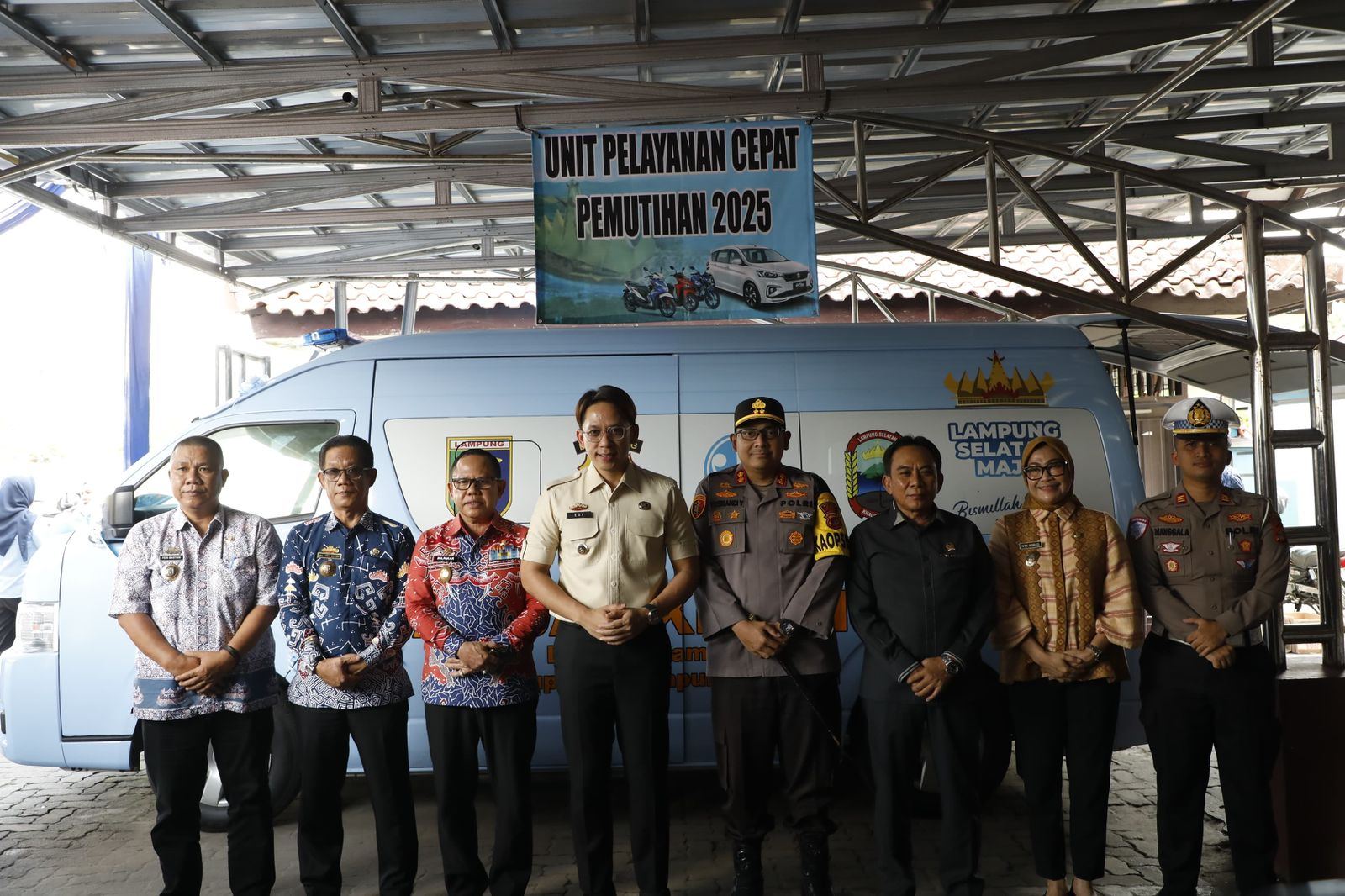 tribratanews.lampung.polri.go.id. Lampung Selatan, Jumat 09 April 2025 – Kapolres Lampung Selatan AKBP Yusriandi Yusrin menghadiri acara penyerahan hibah kendaraan mobil Samsat Keliling dari Pemerintah Kabupaten Lampung Selatan kepada Pemerintah Provinsi Lampung. Kamis, 8 April 2025, pukul 14.00 WIB di Kantor Samsat Kalianda, Kabupaten Lampung Selatan.