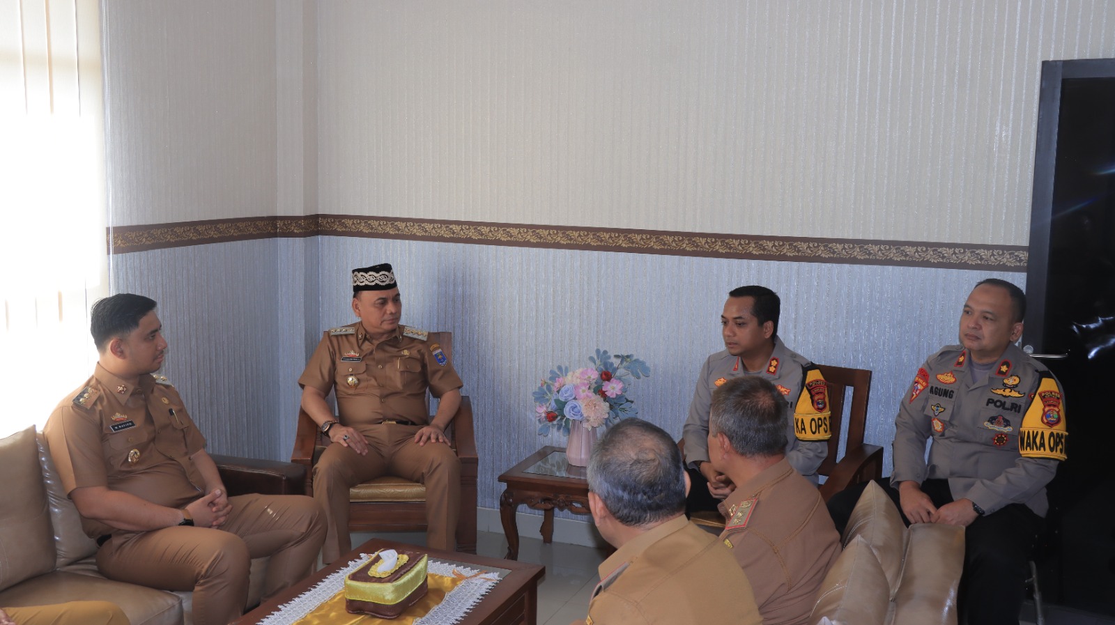 tribratanews.lampung.polri.go.id. Kota Metro, Senin 03 Maret 2025 – Kapolres Metro AKBP Heri Sulistyo Nugroho, S.IK., M.IK bersama pejabat utama Polres Metro menerima kunjungan silaturahmi dari Walikota Metro KH. Bambang Iman Santoso, S.Sos., M.Pd.I dan Wakil Walikota Metro Dr. M. Rafieq Adi Pradana di Mapolres Metro pada Senin (3/3/2025).Kunjungan ini dilakukan tak lama setelah keduanya resmi dilantik, sebagai bentuk sinergi antara pemerintah daerah dan kepolisian dalam menjaga keamanan dan ketertiban masyarakat (kamtibmas) di Kota Metro. Dalam pertemuan yang berlangsung hangat, Kapolres Metro menyampaikan komitmen kepolisian dalam mendukung kebijakan pemerintah daerah, terutama dalam mewujudkan Kota Metro yang aman dan kondusif. "Kami siap bersinergi dengan pemerintah kota dalam menjaga stabilitas keamanan dan ketertiban. Keamanan adalah faktor penting dalam mendukung pembangunan dan kesejahteraan masyarakat," ujar Kapolres Metro. Sementara itu, Walikota Metro menyampaikan apresiasi kepada Polres Metro atas kerja sama yang telah terjalin selama ini. Ia berharap koordinasi antara pemerintah dan kepolisian semakin erat dalam menjalankan program-program pembangunan di Kota Metro. Kegiatan silaturahmi ini juga diisi dengan perkenalan dari jajaran Polres Metro dan diskusi ringan serta foto bersama sebagai simbol soliditas antara Polres Metro dan Pemerintah Kota Metro.
