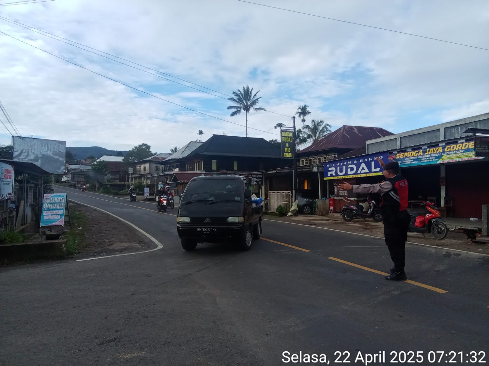 STribratanews Lampung polri go id. Lampung Barat, Rabu 23 April 2025-Dalam upaya menciptakan keamanan dan ketertiban lalu lintas saat jam masuk sekolah, personel Polsek Sekincau melaksanakan pengaturan arus lalu lintas di titik-titik rawan pagi, khususnya di sekitar lingkungan sekolah, Rabu 23/04/25.Kapolres Lampung Barat, AKBP Rinaldo Aser, S.H., S.I.K., M.Si., melalui Kapolsek Sekincau, AKP Samsu Rizal SIP.MH, menyampaikan bahwa kegiatan ini merupakan bagian dari pelayanan prima kepolisian kepada masyarakat, terutama untuk menjamin keselamatan pelajar dan pengguna jalan lainnya. “Setiap pagi, anggota kami ditugaskan di titik-titik rawan macet dan rawan kecelakaan, terutama di sekitar sekolah. Tujuannya agar aktivitas warga, khususnya para pelajar, bisa berjalan lancar dan aman,” ujar AKP Samsu Rizal. Pengaturan lalu lintas pagi ini difokuskan pada jam sibuk, saat siswa dan para guru mulai berdatangan ke sekolah. Personel di lapangan tidak hanya mengatur arus kendaraan, tetapi juga membantu penyeberangan pelajar dan memberikan imbauan kepada para pengendara untuk tetap tertib. Kapolsek menambahkan, kegiatan ini akan terus dilakukan secara rutin sebagai bentuk komitmen Polsek Sekincau dalam menciptakan suasana yang aman dan tertib di lingkungan masyarakat.
