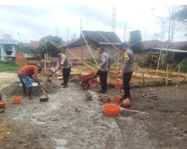 Personel Polsek Way Bungur Bersama Warga Taman Negeri Laksanakan Gotong Royong Bangun Rumah Warga