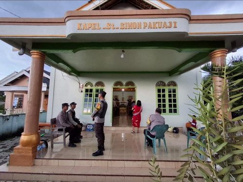 tribratanews.lampung.polri.go.id. Polsek Buay Bahuga Polres Way Kanan melakukan pengamanan kegiatan peringatan Wafatnya Isa Al -Masih (Jumat Agung) dan Paskah 2025 di Gereja Kapel ST. Simon Pakuaji, Kampung Bumi Agung Wates, Kecamatan Bahuga Kabupaten Way Kanan. Minggu (20/04/2025).Adapun pelaksana giat ibadah tersebut mengambil tema “Keluarga dan Komunitasku Bangkit menyelamatkan Bumi dan isinya” dipimpin oleh pendeta Rimo Emiliyanus yang dikuti sekitar 100 jemaat yang hadir memadati kursi di dalam Gereja. Hal itu diungkapkan Kapolres Way Kanan AKBP Adanan Mangopang melalui Kapolsek Buay Bahuga AKP Septri Haryanto sebelum melakukan pengamanan anggota diberikan arahan dan pengecekan persiapan pengamanan tentang deteksi dini dan monitoring berbagai bentuk gangguan kamtibmas. Sebelumnya kami sudah melakukan penyisiran di gereja untuk mensterilisasi berbagai hal yang bisa mengganggu ibadah mulai dari mimbar, hingga pintu masuk gereja dan pengamanan akan terus perketat. Lanjut Kapolsek, rangkaian kegiatan pengamanan ini bertujuan untuk menciptakan rasa aman dan nyaman bagi umat beragama dalam melakukan kegiatan beribadah Jumat Agung dan Paskah tahun 2025. Pihaknya berharap kepada anggota yang melaksanakan tugas pengamanan dengan penuh rasa tanggung jawab dan profesional guna memberikan rasa aman bagi seluruh masyarakat khususnya umat Kristiani dalam menjalankan ibadah. Namun demikian, jika masyarakat menjumpai hal yang mencurigakan agar segera melapor kepada Kepolisian setempat atau memanfaatkan layanan hotline Polri 110," kata dia.