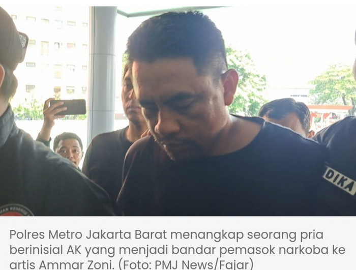 https://tribratanews.lampung.polri.go.id. PMJ NEWS - Satresnarkoba Polres Metro Jakarta Barat menangkap seorang pria berinisial AK yang menjadi bandar pemasok narkoba ke artis Ammar Zoni.