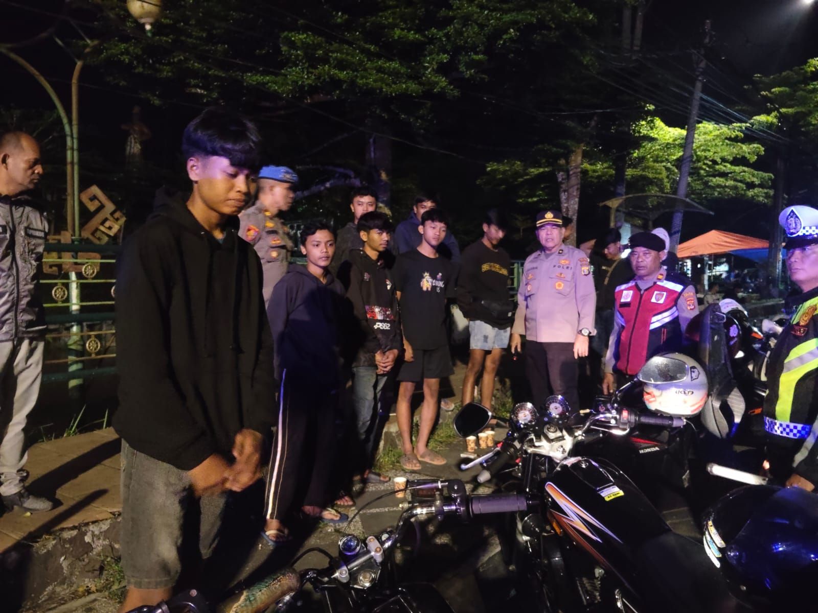 tribratanews.lampung.polri.go.id Lampung Barat Senin 29 September 2025 – Polres Lampung Barat melaksanakan patroli skala besar dalam rangka mengantisipasi kejahatan jalanan pada Minggu malam, 28 September 2025, mulai pukul 21.00 WIB hingga selesai.Kegiatan patroli tersebut dipimpin langsung oleh Kabag SDM Polres Lampung Barat, KOMPOL Suherman, S.H., dengan menyasar sejumlah lokasi strategis, yakni Tugu Kota Liwa, Taman Kota Liwa, Taman Hamtebiu, dan Kebun Raya Liwa. Kapolres Lampung Barat, AKBP Rinaldo Aser, S.H., S.I.K., M.Si., melalui Kabag SDM KOMPOL Suherman, S.H., menyampaikan bahwa patroli skala besar ini digelar untuk memberikan rasa aman kepada masyarakat serta mencegah potensi terjadinya tindak kriminalitas di wilayah hukum Polres Lampung Barat. “Patroli ini merupakan bentuk komitmen Polres Lampung Barat dalam menjaga situasi kamtibmas tetap aman dan kondusif, terutama di pusat keramaian masyarakat pada malam hari,” ujar KOMPOL Suherman. Dengan dilaksanakannya patroli secara berkesinambungan, Polres Lampung Barat berharap masyarakat dapat beraktivitas dengan lebih tenang tanpa rasa khawatir terhadap gangguan keamanan.