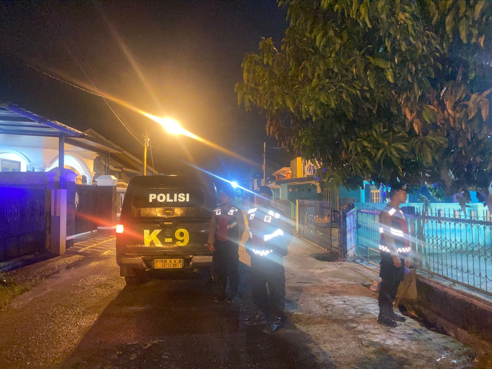 Sementara di area pembangunan hotel Desa Kedaton, polisi berinteraksi dengan penjaga malam. Mereka mengingatkan agar lebih waspada terhadap material dan barang-barang bangunan, terutama di tengah kondisi cuaca hujan.