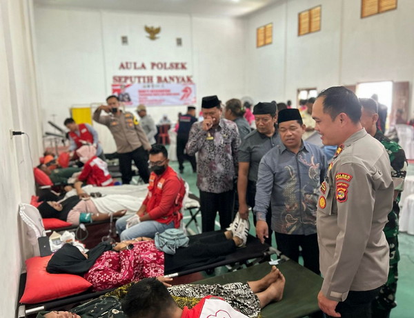tribratanews.lampung.polri.go.id. Lampung Tengah – Polres Lampung Tengah bekerjasama dengan Palang Merah Indonesia (PMI) Kabupaten setempat, menggelar kegiatan bakti kesehatan berupa donor darah dan pengobatan gratis pada Rabu (19/6/25), bertempat di Aula Polsek Seputih Banyak.Kegiatan ini diikuti oleh Kapolsek Seputih Banyak, Iptu Hairil Rizal, S.H., M.H beserta personelnya, jajaran Forkopimcam Seputih Banyak dan Way Seputih, Ibu Bhayangkari, Kepala Kampung, dan ratusan warga sekitar. Mewakili Kapolres Lampung Tengah, Polda Lampung AKBP Alsyahendra, S.I.K., M.H, Kasi Humas Iptu Tohid Suharsono menjelaskan bahwa bakti kesehatan berupa donor darah dan pengobatan gratis ini merupakan bagian dari rangkaian kegiatan Polres Lampung Tengah dalam menyambut Hari Bhayangkara ke-79 yang mengusung tema "Polri Untuk Masyarakat". Adapun layanan kesehatan secara gratis yang diberikan oleh Si Dokkes Polres Lampung Tengah dengan dipimpin Kasi Dokkes, Ipda dr. Deno Madasa Subing tersebut meliputi pemeriksaan tekanan darah, gula darah, kolesterol, dan asam urat. "Selain itu, juga tersedia layanan pengobatan gigi, donor darah, dan pemberian terapi," imbuhnya. Antusiasme masyarakat pun sangat tinggi. Tercatat sebanyak 169 orang mengikuti pengobatan umum dan gigi, sementara 155 orang mendonorkan darahnya. Kasi Humas berharap, dengan adanya kegiatan ini dapat memberikan kontribusi positif kepada masyarakat dan juga bisa memenuhi kebutuhan darah yang cukup bagi PMI Kabupaten Lampung Tengah. "Semoga, setetes darah yang didonorkan akan menjadi penyambung nyawa bagi masyarakat yang membutuhkan," ungkapnya. Pihaknya pun mengimbau dan mengajak seluruh masyarakat untuk bersama-sama menjaga situasi Kamtibmas agar tetap aman kondusif diwilayah hukum Polres Lampung Tengah.
