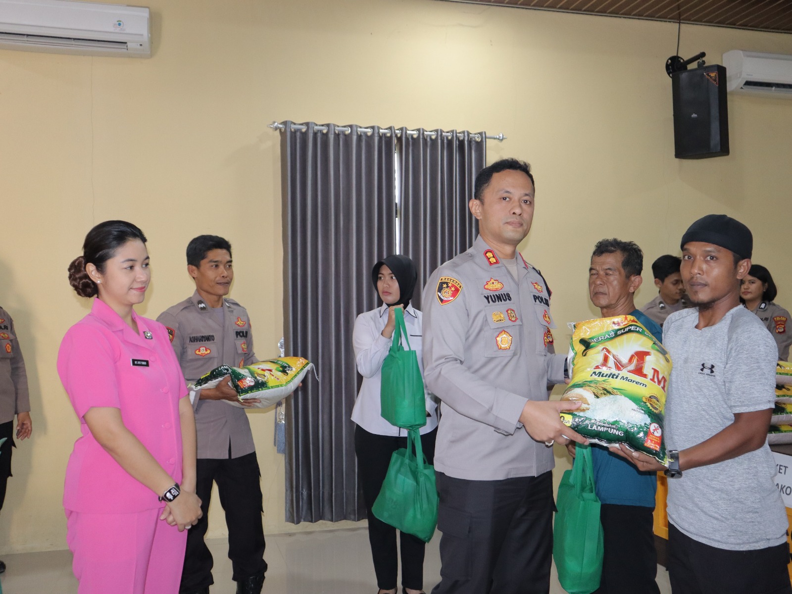 tribratanews.lampung.polri.go.id. Pringsewu, Jumat 21 Maret 2025– Polres Pringsewu bersama Bhayangkari Cabang Pringsewu menggelar bazar murah Ramadan di halaman Mapolres Pringsewu pada Kamis (20/3/2025). Kegiatan ini dibuka langsung oleh Kapolres Pringsewu, AKBP M. Yunnus Saputra, didampingi Ketua Bhayangkari Cabang Pringsewu, Ny. Ayu Yunnus.Dalam bazar ini, berbagai kebutuhan pokok dijual dengan harga lebih murah dari pasaran. Misalnya, beras medium yang biasanya seharga Rp12.500 per kilogram dijual Rp9.000, minyak goreng dari Rp19.000 menjadi Rp16.000 per liter, gula pasir dari Rp18.000 turun menjadi Rp15.000 per kilogram, dan tepung terigu yang biasa Rp12.500 kini hanya Rp10.000 per kilogram. Kapolres Pringsewu, AKBP M. Yunnus Saputra, menyampaikan bahwa bazar murah ini merupakan wujud kepedulian Polres Pringsewu dan Bhayangkari kepada masyarakat dalam menyambut bulan suci Ramadan. "Kami ingin membantu meringankan beban masyarakat dengan menyediakan bahan pokok berkualitas dengan harga yang lebih terjangkau. Antusiasme warga sangat tinggi, ini menunjukkan bahwa kegiatan seperti ini memang dibutuhkan," ujar AKBP Yunnus dilokasi kegiatan. Dengan suksesnya bazar murah Ramadan ini, Polres Pringsewu berharap dapat terus menghadirkan kegiatan sosial yang bermanfaat bagi masyarakat, terutama dalam menghadapi kenaikan harga kebutuhan pokok pada momen-momen penting seperti bulan Ramadan dan jelang idul Fitri dimana. Kapolres menambahkan dalam kegiatan ini pihanya juga turut memberikan bantuan sosial berupa bahan kebutuhan pokok kepada sejumlah warga sekitar. Bantuan ini diharapkan dapat memambantu keberlangsungan ekonomi keluarga para penerima. Bazar yang dimulai sejak pukul 14.00 WIB ini langsung diserbu oleh anggota Polres maupun warga sekitar. Hanya dalam beberapa jam, sebagian besar stok bahan pokok ludes terjual. Salah satu warga Pekon Klaten, Yuni, mengaku sangat senang dengan adanya bazar ini. "Harga-harga kebutuhan pokok sekarang mahal, jadi adanya bazar ini sangat membantu kami. Semoga kegiatan seperti ini bisa sering diadakan," ungkapnya.