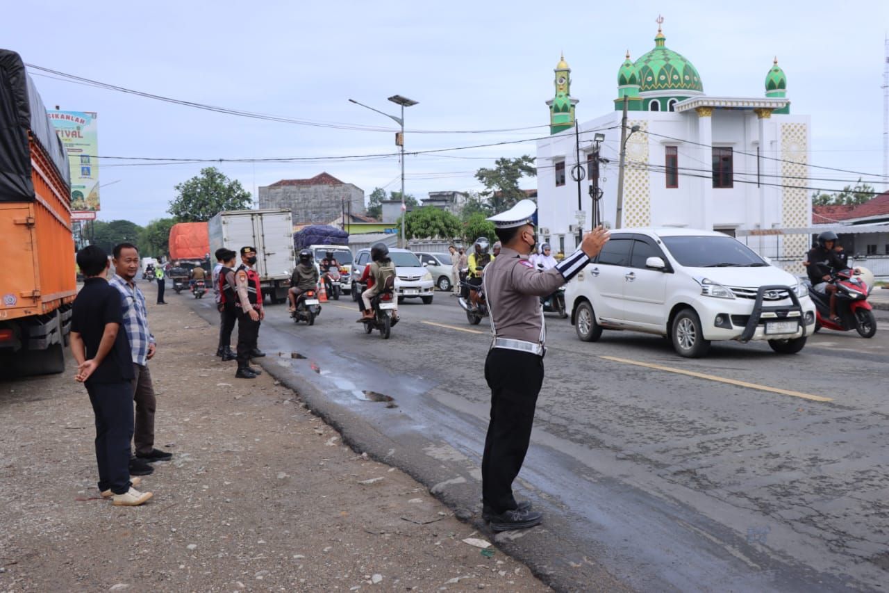 Tak hanya di jalur utama, personel juga terlihat melakukan pengaturan di jalan-jalan umum, area pasar, serta kawasan perkantoran pemerintahan. Kegiatan ini berlangsung sejak pukul 06.30 WIB dan dilaksanakan hingga kepadatan arus lalu lintas berangsur normal.