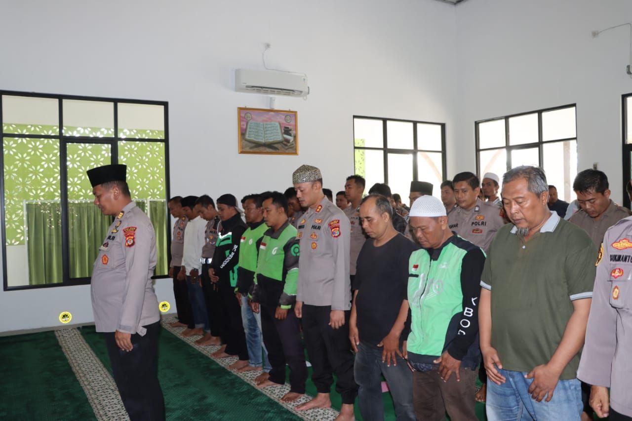 tribratanews.lampung.polri.go.id. Pringsewu, Sabtu 30 Agustus 2025 – Sebagai wujud empati atas insiden unjuk rasa yang menewaskan seorang driver ojek online, serta korban luka luka lainya jajaran Polres Pringsewu menggelar shalat ghaib dan doa bersama yang melibatkan komunitas ojek online serta masyarakat umum. Kegiatan ini tidak hanya untuk mendoakan korban dan keluarganya, tetapi juga menjadi ikhtiar bersama agar situasi di berbagai daerah yang tengah memanas segera mereda dan kembali kondusif. Sabtu (30/8/2025)Kapolres Pringsewu AKBP M. Yunnus Saputra menyampaikan bahwa shalat ghaib dan doa lintas elemen masyarakat ini merupakan bentuk kepedulian sekaligus simbol persatuan. Menurutnya, kegiatan tersebut menjadi wujud nyata bahwa kepolisian, komunitas, dan masyarakat bergerak seiring dalam menjaga kedamaian. “Melalui shalat ghaib dan doa bersama ini, kami berharap keluarga korban diberi kekuatan dan ketabahan. Di sisi lain, semoga suasana di sejumlah wilayah yang saat ini memanas dapat segera pulih, sehingga masyarakat bisa kembali beraktivitas dengan aman dan tenang,” ujarnya.