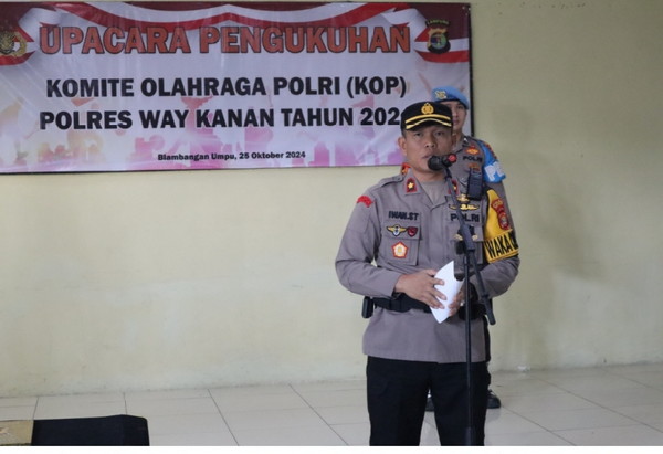 tribratanews.lampung.polri.go.id Polres Way Kanan Polda Lampung Gelar Upacara Pengukuhan Pengurus Komite Olahraga PolriStruktur organisasi dan pengurus Komite Olahraga Polri (KOP) di lingkungan Polres Way Kanan Polda Lampung resmi dikukuhkan. Kegiatan berlangsung di Aula Adhi Pradana Polres Way Kanan. Selasa (29/10/2024) Upacara ini dipimpin langsung oleh Wakapolres Way Kanan Kompol Iwan Setiawan yang dihadiri oleh, Ketua KONI Kabupaten Way Kanan, Pejabat Utama Polres dan personel Polres Way Kanan. Dalam kesempatan tersebut, Kapolres Way Kanan AKBP Adanan Mangopang melalui Wakapolres Way Kanan Kompol Iwan Setiawan menjelaskan pengukuhan KOP di lingkungan Polres Way Kanan ini bertujuan untuk menyusun dan menata organisasi serta kepengurusan Komite Olahraga Polri. Selain itu, sebagai langkah awal guna meningkatkan solidaritas dan kerja sama yang baik dengan masyarakat maupun dengan instansi terkait dalam hal ini komite olahraga nasional Indonesia (KONI) Kabupaten Way kanan dalam memajukan olahraga di lingkungan Polres Way Kanan. Melalui Komite Olahraga Polri (KOP) di lingkungan Polres Way Kanan, dapat meningkatkan kualitas SDM yang unggul dan berprestasi. Para atlet Polri diharapkan tidak hanya melaksanakan tugas dan tanggung jawabnya sebagai anggota Polri, tetapi juga mampu membawa nama baik Polri melalui prestasi di bidang olahraga. "Sehingga nantinya akan mampu mendorong kepercayaan publik terhadap Polri semakin positif," jelasnya.