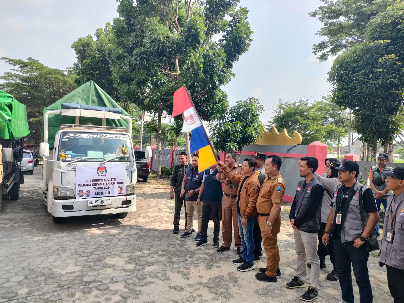 Distribusi logistik dimulai dengan pelepasan resmi di Kantor Camat Kalianda yang dihadiri oleh Ketua PPK Heru Diansyah, Camat Kalianda Eman Suheri, Kapolsek Kalianda IPTU Sulyadi, Danramil Tanjung Bintang yang diwakili Sertu Indra, dan Ketua Panwascam Rela Setia. Kegiatan berlangsung dengan pengamanan ketat dari Polri, TNI, serta Satpol PP.