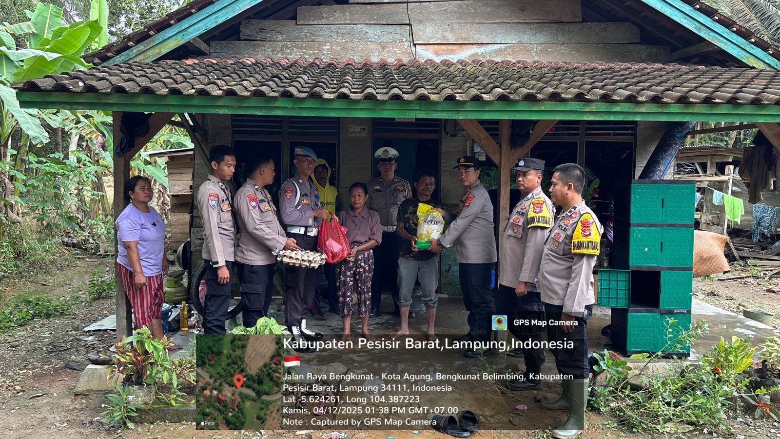 tribratanews.lampung.polri.go.id. Pesisir Barat Rabu 10 Desember 2025, personel Polsek Bengkunat melaksanakan kegiatan bakti sosial dengan membersihkan rumah warga serta menyalurkan bantuan kepada korban banjir di Pekon Pemerihan, Kecamatan Bengkunat, Kabupaten Pesisir Barat.Banjir yang melanda wilayah tersebut membuat sejumlah rumah warga terendam lumpur dan material akibat luapan air. Melihat kondisi itu, personel Polsek Bengkunat bergerak cepat membantu masyarakat dengan melakukan pembersihan rumah, halaman, serta fasilitas umum yang terdampak.