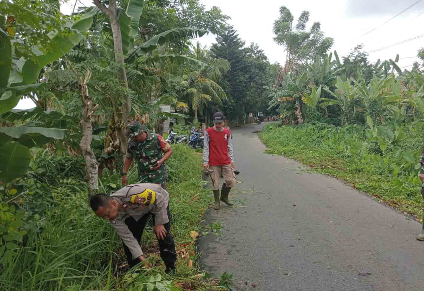 AIPTU Wawan S dan personil lainnya terlibat langsung dalam pembersihan lingkungan desa, dengan menggunakan arit rumput untuk membersihkan area-area yang ditumbuhi rumput liar.