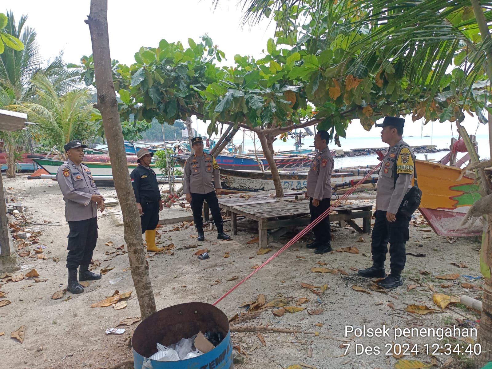 Lampung Selatan, Memastikan keamanan wilayah dan antisipasi dampak cuaca buruk, Polsek Penengahan melaksanakan monitoring terhadap kapal-kapal nelayan di Pantai Minang Rua, Desa Klawi, Kecamatan Bakauheni, Lampung Selatan. dipimpin langsung oleh Kapolsek Penengahan, IPTU Dixko Romadi Alfansyah Subing, S.Tr.K., M.M., bersama jajaran. Sabtu, 7 Desember 2024 pukul 12.00 WIB.