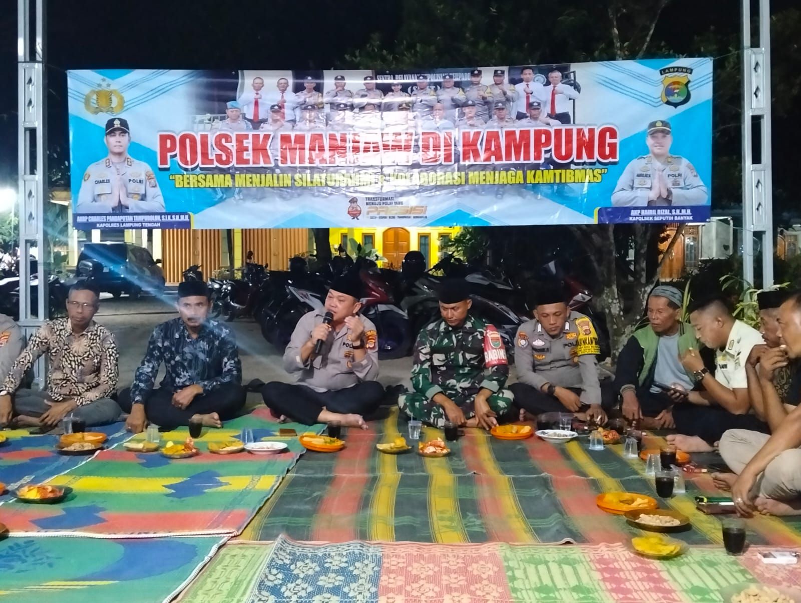 tribratanews.lampung.polri.go.id. Lampung Tengah, Jumat 30 Januari 2026 — Guna meningkatkan peran serta masyarakat dalam menjaga keamanan dan ketertiban lingkungan, Polsek Seputih Banyak, Polres Lampung Tengah, Polda Lampung kembali menggelar kegiatan Polsek Manjaw di Kampung (PMK), pada Kamis malam (29/01/26).Kegiatan yang berlangsung pada pukul 20.00 WIB tersebut dilaksanakan di Kampung Sri Busono (SB10), Kecamatan Way Seputih, dan dipimpin langsung oleh Kapolsek Seputih Banyak, AKP Hairil Rizal, S.H., M.H. PMK merupakan salah satu program unggulan Kaposek yang bertujuan mempererat hubungan emosional antara kepolisian dengan masyarakat, sekaligus membangun sinergi bersama aparatur kampung dan para tokoh.